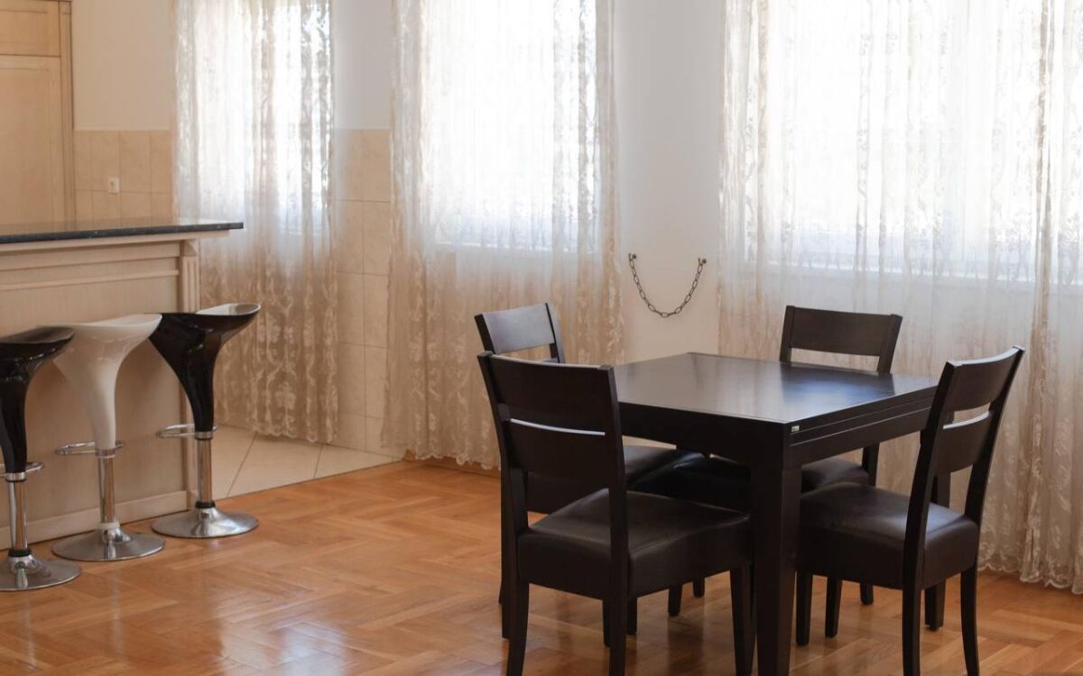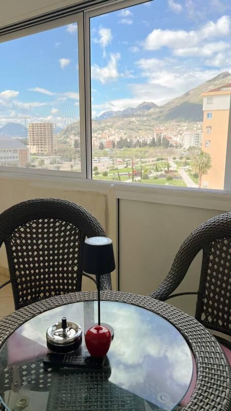 Excellent apartment in the very center of the Bar, next to SOHO. The apartment has 2 bedrooms, 2 bathrooms, living room, kitchen with dining area, terrace. The windows overlook the sea and the Soho restaurant. A very warm house with excellent sound insulation. New air conditioners in every room. The apartment is for sale fully equipped with furniture and electrical appliances. Large Parking lot near the house. The beach is a 5-minute walk away, everything you need is within walking distance.