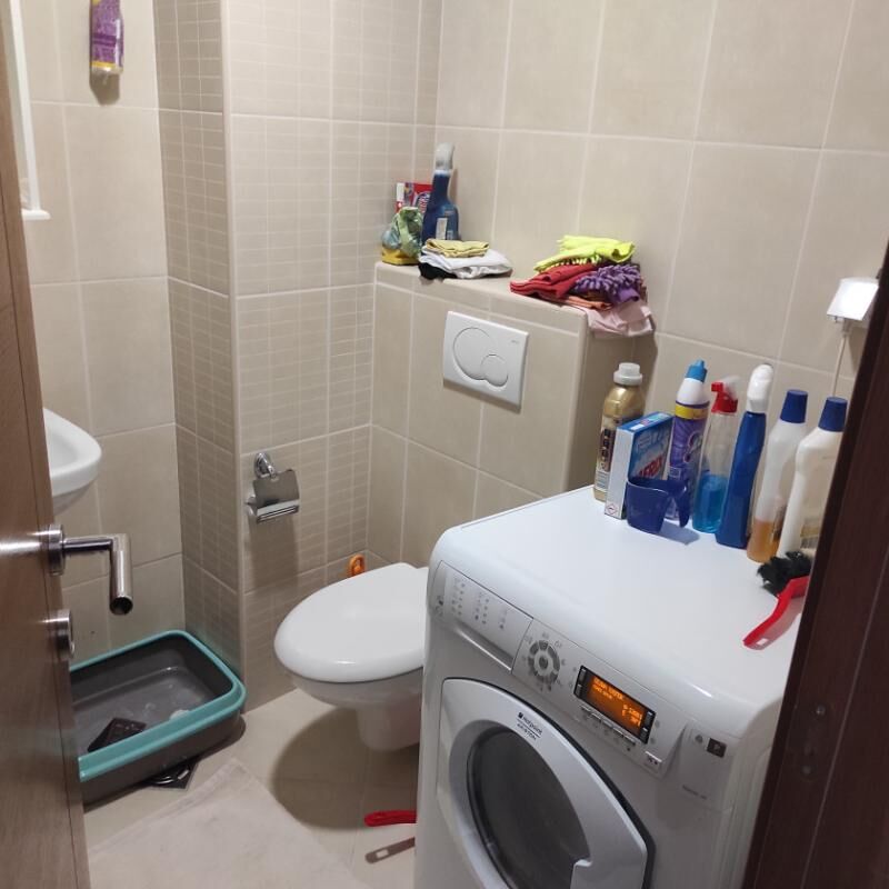 A furnished 2-bedroom apartment is for sale on the 9th floor of an apartment building. Layout: kitchen combined with living room, 2 bedrooms, bathroom and terrace. The sea is 500 meters away. There is a large free parking in the courtyard