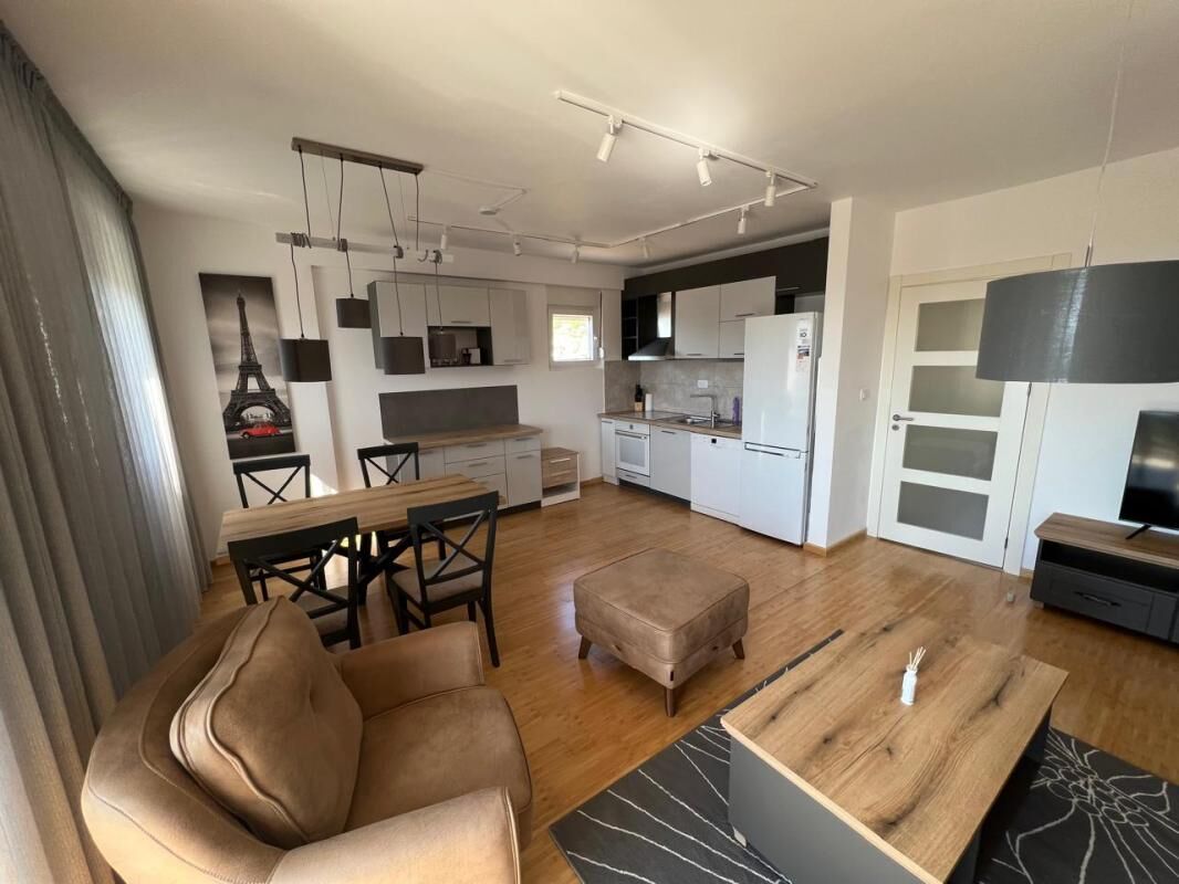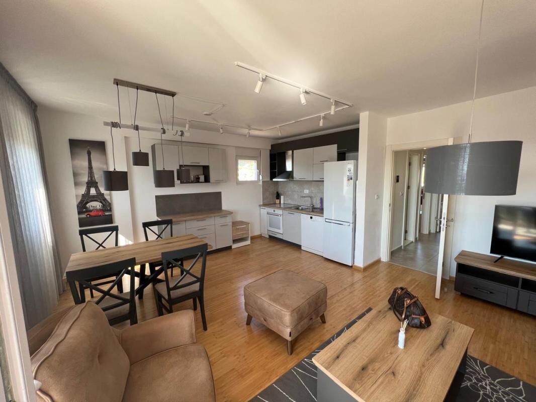 A modern one-bedroom apartment is for rent in a new building in the center of Podgorica.