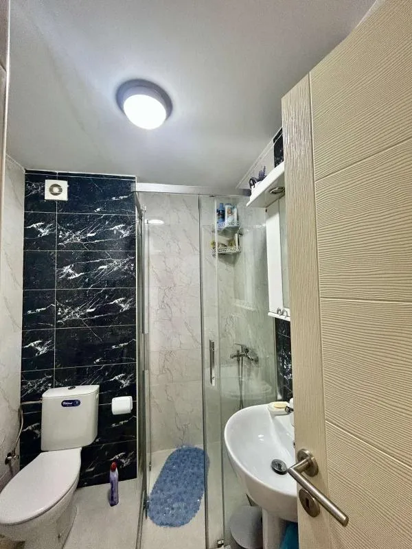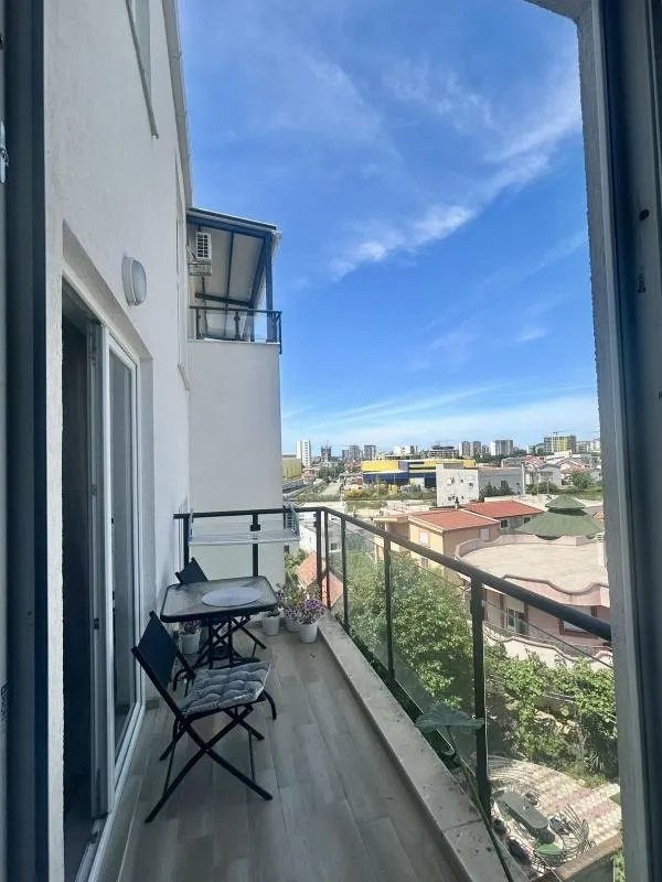 Sale of Bar No. 7572. Cozy apartment with an area of 40m2 on the 3rd floor in a new residential building with 2 elevators. The apartment includes: 1 bedroom, living room - kitchen, modern bathroom, terrace, hallway; 1 parking space in the garage. Access to the terrace from both rooms. The apartment is well-equipped with stylish furniture, air conditioning, and the most modern electrical appliances. The building is located in a quiet and beautiful area, near Kips, other shops, a school, and 3 minutes by car to the sea.
