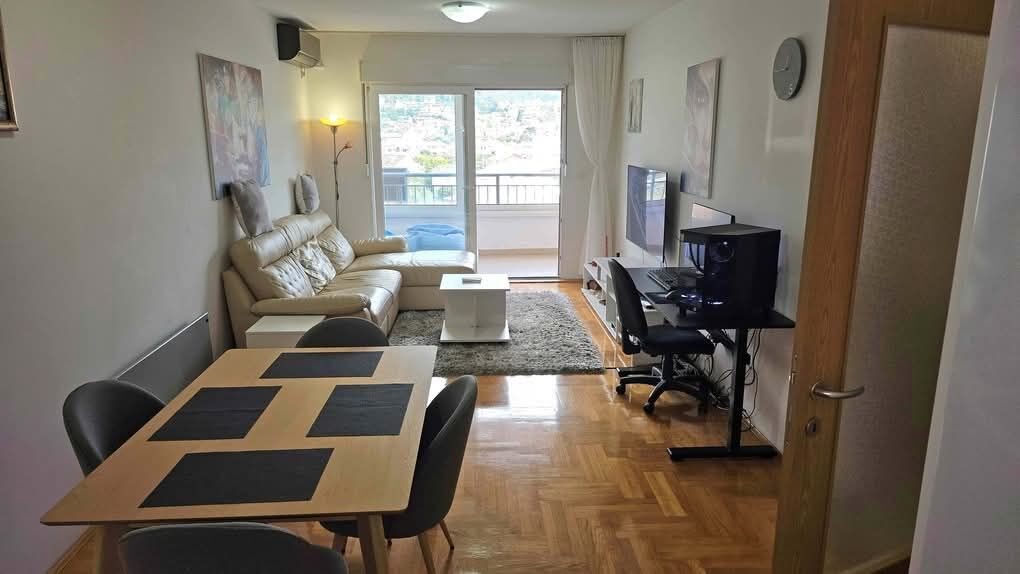 Apartment behind the Yugoslavia school in Bar Object No. 670 City: Bar Area: 76 m2 + basement 3 m2 Floor: 8/9 Number of bedrooms: 2 Price: 180,000€ Structure of the housing: 🌴 living room-kitchen with dining area 🌴 2 bedrooms 🌴 bathroom 🌴 toilet 🌴 terrace Amenities: ⭐ parking ⭐ air conditioning ⭐ dishwasher ⭐ washing machine ⭐ 2 elevators Distance to 📌 beach - 1.3 km 📌 nearest supermarket - 450 m 📌 school - 200 m