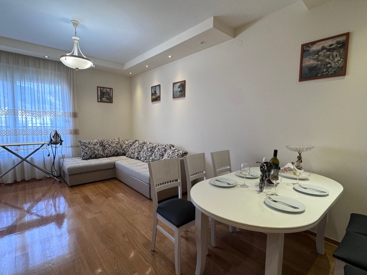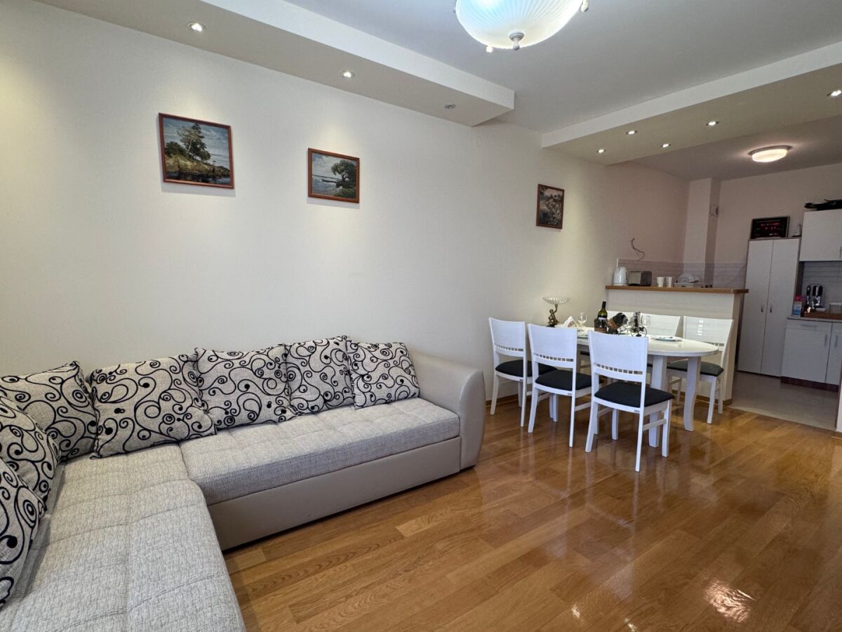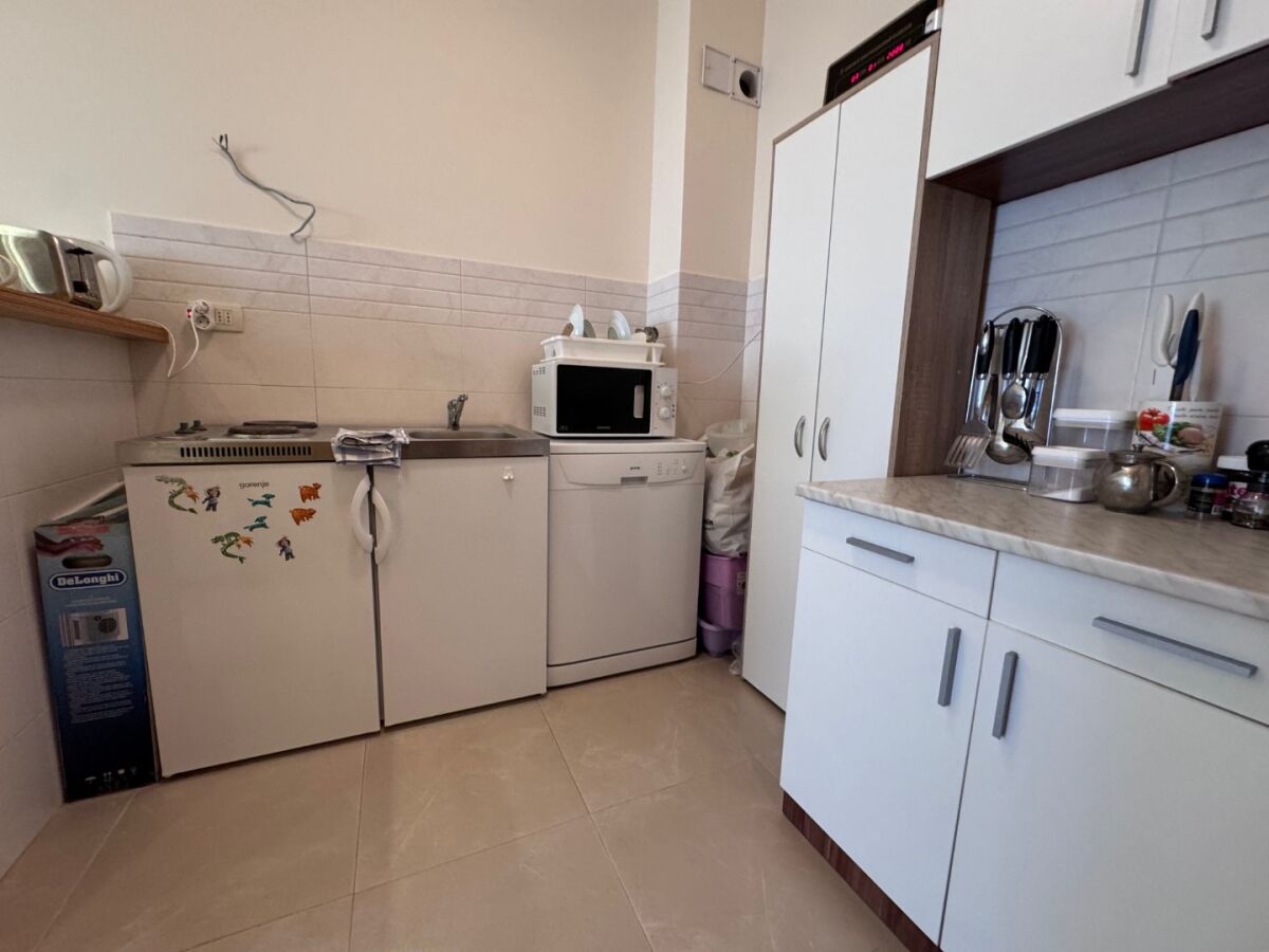 City: Bar Residential complex: Zetagradnja Area: 47 m² Number of bedrooms: 1 Floor: 4 Direction: southwest View from windows: courtyard Price: 141,000 € Additional parameters Layout: hallway, bathroom with shower cabin, bedroom, kitchen-living room, terrace Terrace: available, with access from bedroom and living room Elevator: two elevators in the building Parking: parking in front of the building Floor: 4 View from windows: courtyard Furniture and appliances The apartment is fully furnished and ready to live in The kitchen area is equipped with necessary furniture, includes a dishwasher and microwave oven Bedroom and living room areas are furnished Materials Modern finishing High-quality flooring Bathroom tiled with shower cabin Utilities The building is connected to city water supply and electricity networks Air conditioner installed Internet and TV connection available Location The apartment is located in the center of Bar, in the residential complex Zetagradnja Within walking distance are supermarkets IDEA and Voli, household appliance stores, cafes There is a children's playground in the courtyard of the complex About 5 minutes walk to the promenade and beach Message to potential buyers A cozy apartment for sale in the very center of Bar — an excellent choice both for comfortable living by the sea and for summer vacation. Spacious layout, furnishing, presence of a terrace, and proximity to all necessary infrastructure make this offer especially attractive. The complex is located just 5 minutes from the promenade.