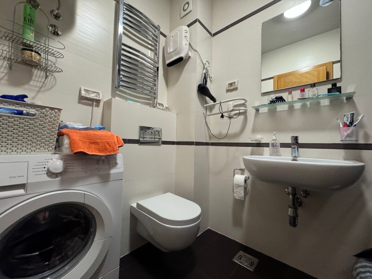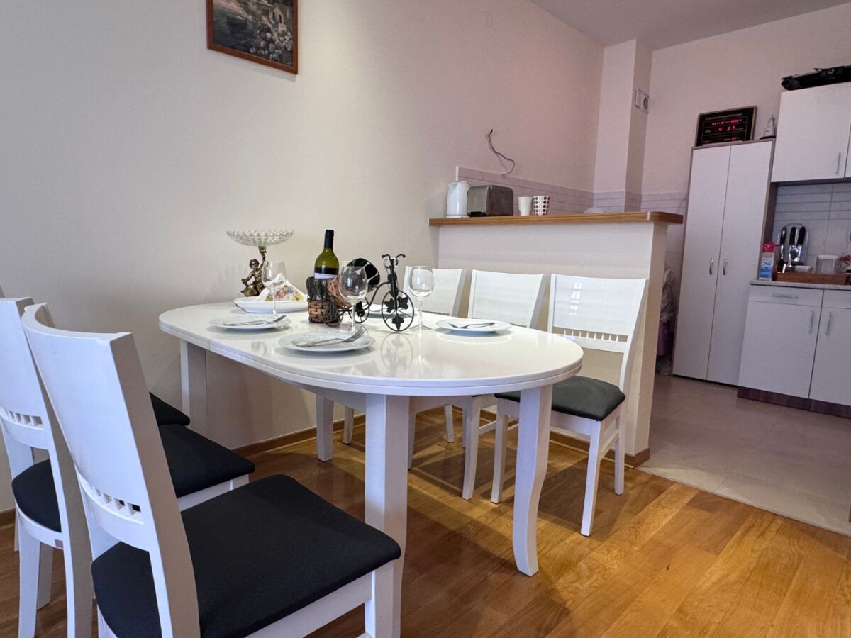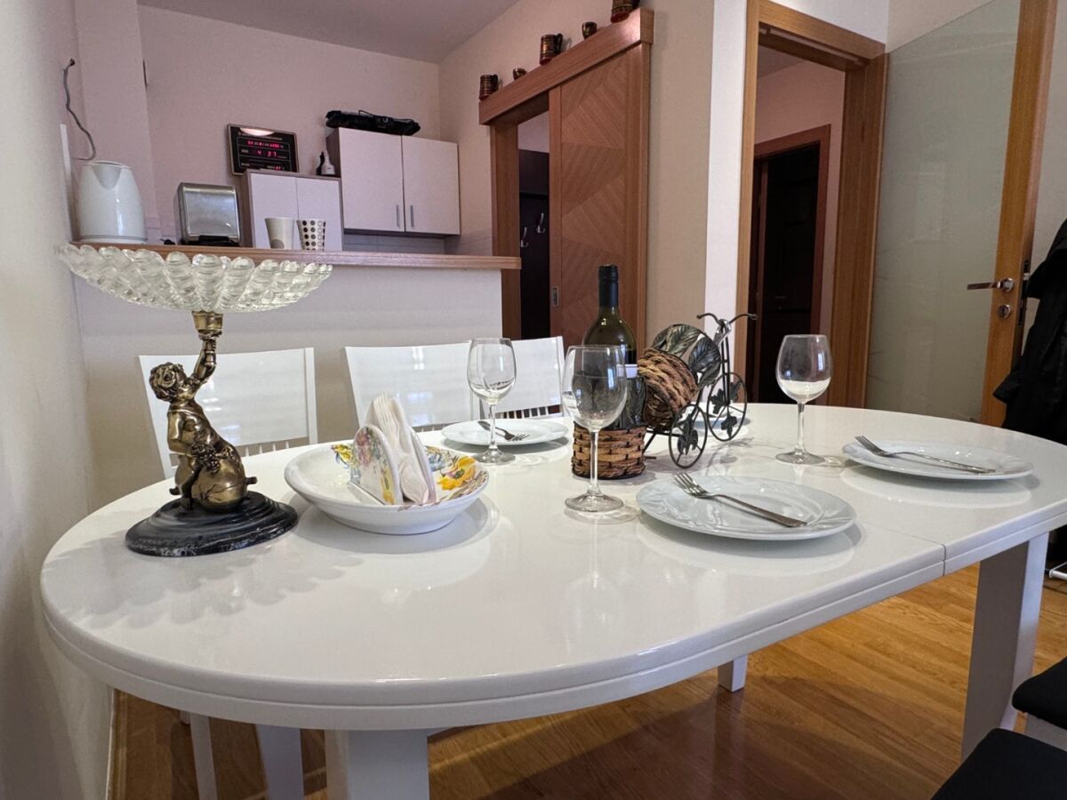 City: Bar Residential complex: Zetagradnja Area: 47 m² Number of bedrooms: 1 Floor: 4 Direction: southwest View from windows: courtyard Price: 141,000 € Additional parameters Layout: hallway, bathroom with shower cabin, bedroom, kitchen-living room, terrace Terrace: available, with access from bedroom and living room Elevator: two elevators in the building Parking: parking in front of the building Floor: 4 View from windows: courtyard Furniture and appliances The apartment is fully furnished and ready to live in The kitchen area is equipped with necessary furniture, includes a dishwasher and microwave oven Bedroom and living room areas are furnished Materials Modern finishing High-quality flooring Bathroom tiled with shower cabin Utilities The building is connected to city water supply and electricity networks Air conditioner installed Internet and TV connection available Location The apartment is located in the center of Bar, in the residential complex Zetagradnja Within walking distance are supermarkets IDEA and Voli, household appliance stores, cafes There is a children's playground in the courtyard of the complex About 5 minutes walk to the promenade and beach Message to potential buyers A cozy apartment for sale in the very center of Bar — an excellent choice both for comfortable living by the sea and for summer vacation. Spacious layout, furnishing, presence of a terrace, and proximity to all necessary infrastructure make this offer especially attractive. The complex is located just 5 minutes from the promenade.