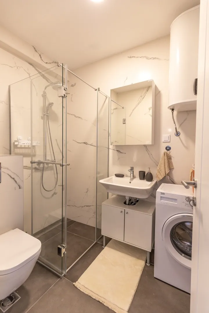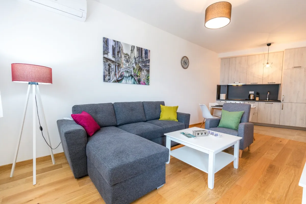 Sale ID4304. A one-bedroom apartment is for sale in Becici, in the area of Ivo Lole Ribara Street. A quiet, peaceful neighborhood, it is an ideal place for year-round living or renting out the apartment. Within a radius of 600 meters from the building, there is essential infrastructure: cafes, restaurants, several shops, a spacious promenade, and a sandy-pebble beach. The distance to the sea is 600 meters. The building where the apartment is located was constructed in 2021. The apartment is situated on the 4th floor in a building with an elevator. The layout of the apartment includes a living room with a kitchen, a bedroom, a bathroom, and a terrace. The terrace offers a stunning view of the sea and surroundings. The apartment is sold with furniture and appliances. It has high investment potential and is excellent for year-round rentals and during the summer season. The future owner can also purchase a garage space in the underground parking.