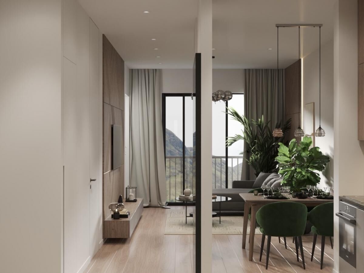 The new complex is located in Bečići, 700 meters from the beach. The building has a modern design and is constructed from high-quality materials that create a pleasant atmosphere. It consists of 2 buildings with 49 apartments. The apartments have a sea view. There are 3 types of apartments available: studios, 1-bedroom, and 2-bedroom. The complex offers additional services: a restaurant, bar, landscaped pool, and gym. There are plans for a year-round apartment rental service, reception, including transportation to the beach. The complex provides all the amenities for a beautiful life. The 3% sales tax does not apply to the purchase of apartments. Completion date: December 2026. Reception is available 24/7. It is well-suited for both living and investment purposes, as well as for rental. Payment plans are available until the end of construction.