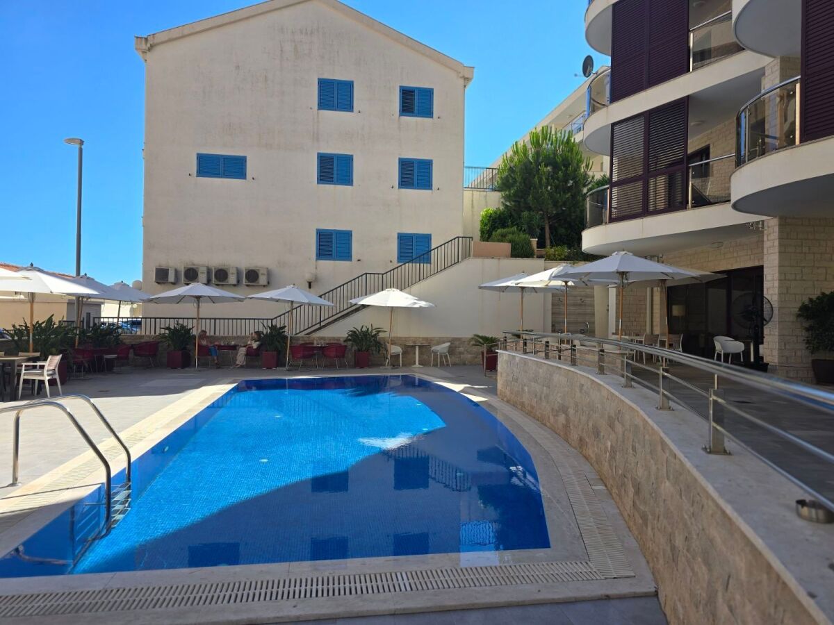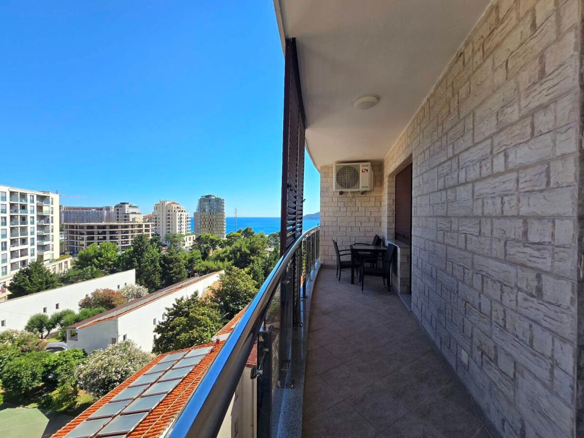 Real Estate Montenegro A spacious, modernly furnished three-bedroom apartment with a beautiful sea view is for sale, located in a quiet and prestigious part of Bečići, within the Anatolia complex. The apartment is just a 5-minute walk from the nearest beach. It is situated on the third floor of a building with an elevator and has a surface area of 93m². Layout: Three bedrooms Two bathrooms Two terraces The apartment is fully equipped with high-quality and modern furniture. Residents of the Anatolia complex also have access to a swimming pool.