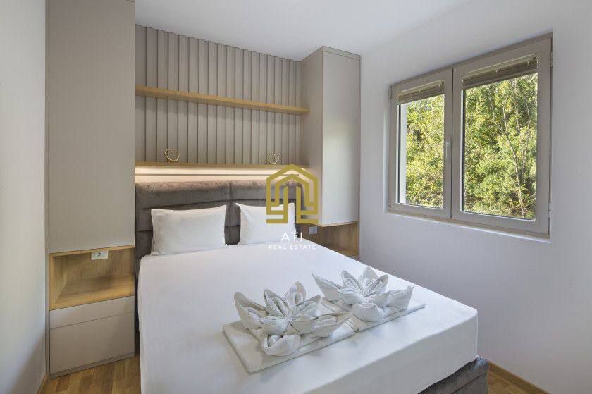 ID-518 A modern furnished apartment of 55 m2 is for sale in one of the most attractive buildings in Bečići, the WOW building, which is located in close proximity to the Idea market. Area: 55 m2 1 bedroom 5th floor The building has an elevator Fully furnished with modern and high-quality furniture - ready for move-in Possibility to purchase a garage space for €10,000 The apartment is ideal for both family living and renting during the tourist season. It features a modern interior, quality construction, and an excellent location in a quiet part of Bečići, just a few minutes' walk from the beach and all necessary amenities.
