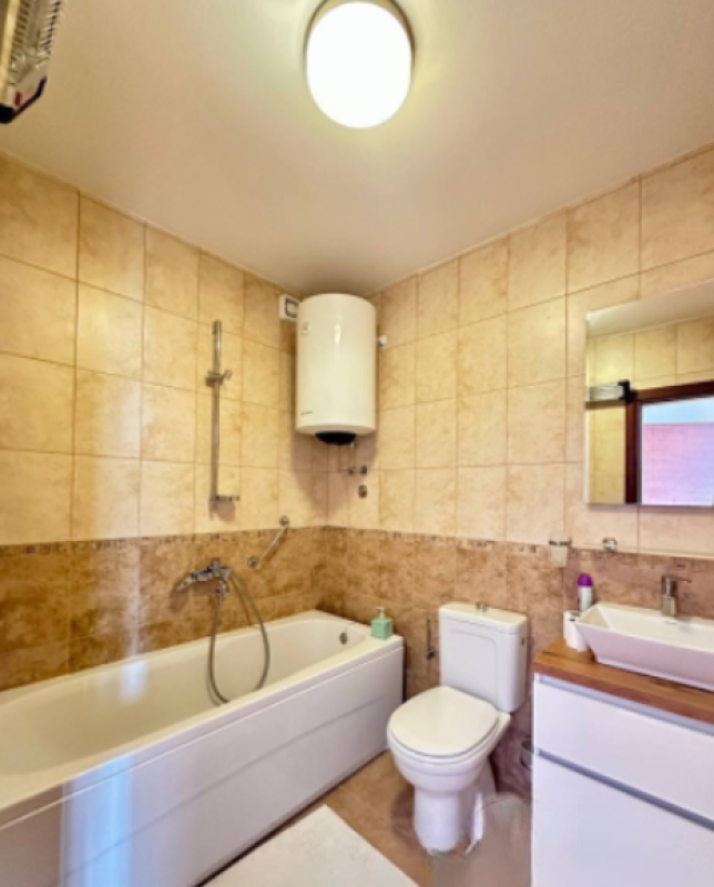 Spacious, bright apartment with 2 bedrooms, living room with kitchen and dining area, 2 bathrooms. The apartment is dry and comfortable for year-round living. Spacious terrace with direct sea view. The apartment has a comfortable layout and is finished with high-quality environmentally friendly materials. Air conditioning in every room. The kitchen is fully equipped. It has its own garage space. On the territory of the house there is a green area and a barbecue area; a private garage. The sea is 900m away. There is a management company in the house. Clean documents.