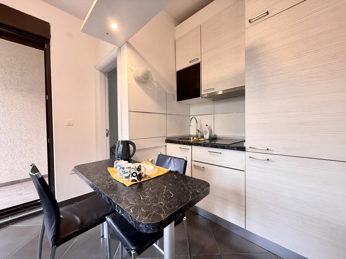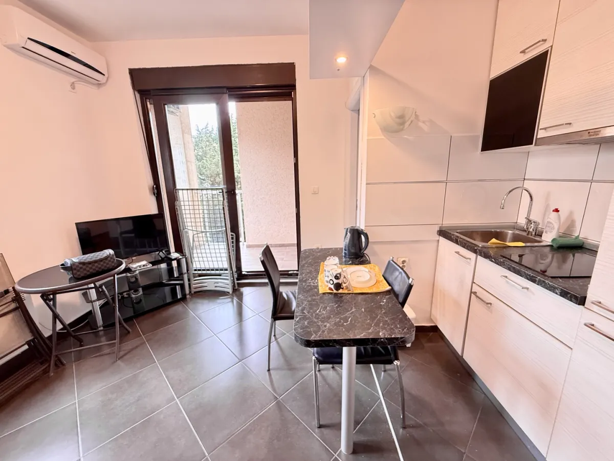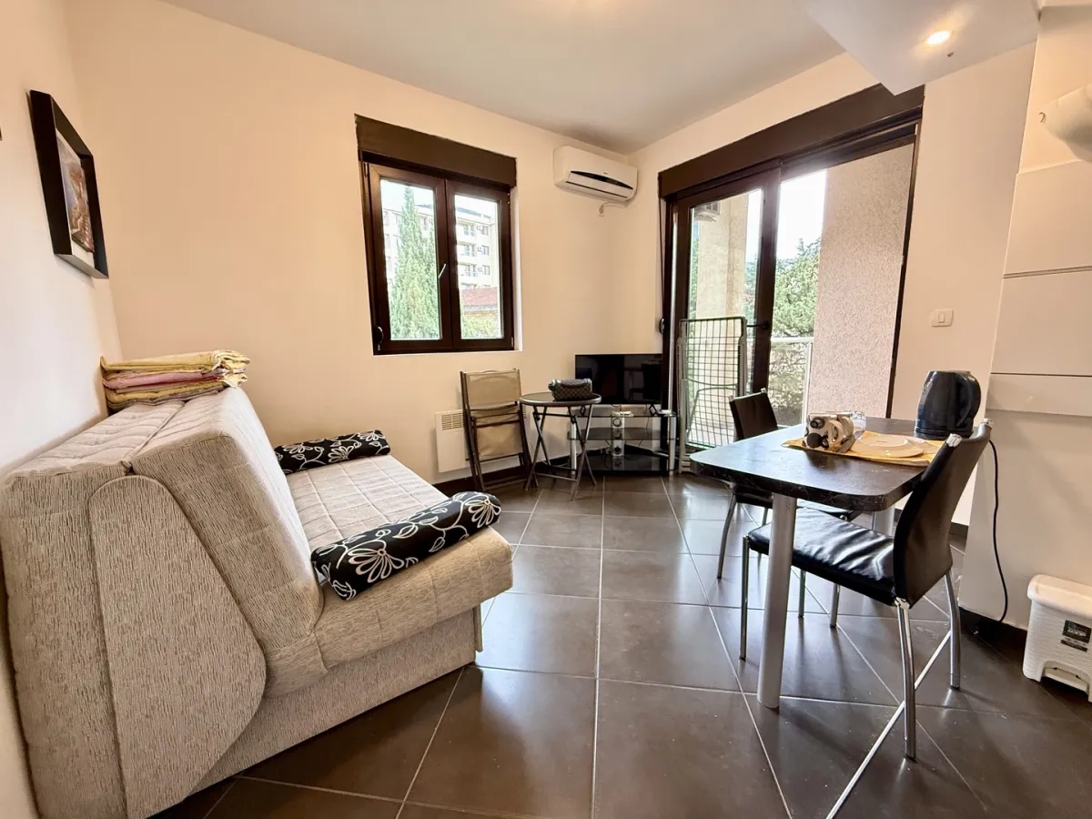 For sale in Becici #7457. One-bedroom apartment near the sea with mountain views, new building, 350 meters from the sea. Elevator. Terrace. Large walk-in closet. 3rd floor. Nearby are a supermarket, children's playgrounds, basketball and football fields, and a work-out area. CCTV cameras.
