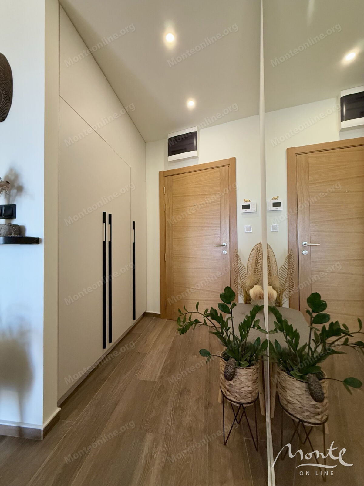 In the heart of the Budva Riviera, in the picturesque resort of Bečići, a cozy 2-bedroom apartment with an area of 62 sq. m is offered for sale. Located in a new residential complex, this apartment is the perfect place for those who value comfort, modern design, and inspiring views. The apartment is situated on a high floor, providing stunning panoramic views of the blue waters of the Adriatic Sea. By opening the windows or stepping out onto the balcony, you will enjoy the fresh sea air and the unique beauty of the coastline, creating an ideal space for relaxation and unwinding. The modern design of the apartment ensures both functionality and elegance. The spacious living room with an open layout is perfect for family gatherings and entertainment. The kitchen is equipped with modern appliances and equipment, allowing for enjoyable and hassle-free cooking. The structure of the apartment includes: • A bright living room combined with the kitchen area, creating a unified open space. • Two comfortable bedrooms. • A modern bathroom equipped with high-quality plumbing, with an interior designed in a contemporary style that complements the overall design concept of the apartment. The location in Bečići allows you to enjoy all the advantages of a famous resort: pristine beaches, developed infrastructure, numerous restaurants and cafes, while maintaining a calm and comfortable living atmosphere. This apartment is an excellent choice for both personal residence and summer vacations or a profitable investment in one of the most sought-after regions of Montenegro.