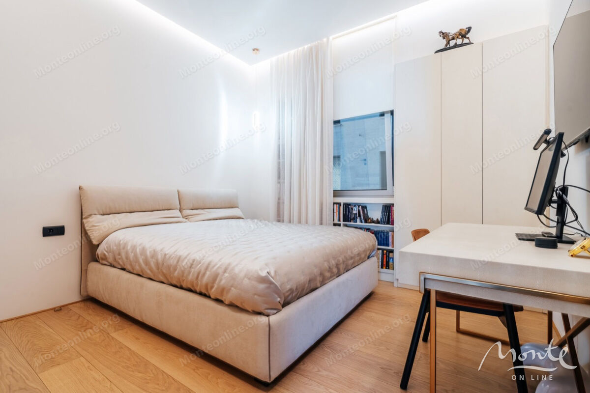We present for sale a stylish and functional apartment with 2 bedrooms, covering an area of 79 sq. m, located in the residential complex "Garmoniya," one of the most picturesque and convenient areas of the Budva Riviera, on the border between Budva and Bečići. The interior of the apartment is designed according to an individual design project, where every detail is carefully thought out — from the ergonomic layout to the quality finishes. The panoramic windows offer a breathtaking view of the Adriatic Sea. The apartment includes a bright living room with a kitchen area, two cozy bedrooms, a guest bathroom, and a spacious shower. The price includes built-in furniture, while the remaining furniture is discussed individually. The "Garmoniya" complex is a modern residential complex located on a hillside with picturesque views. It features a high level of construction, thoughtful architecture, and an atmosphere of seclusion. The area is characterized by its exceptional location: shops, cafes, and a promenade are within walking distance, and the Old Town of Budva is just a 25-minute leisurely walk away. Nearby is the prestigious residential complex Dukley Gardens, which adds additional status and appeal to the area. This is the perfect place for those who value comfort, aesthetics, and convenience of location. Silence, safety, clean sea air, and proximity to all necessary infrastructure make "Garmoniya" an excellent choice for both permanent living and seasonal vacations. Budva is the leading resort in Montenegro, known for its developed infrastructure, historical center, beaches, and vibrant cultural life. This city is the ideal combination of nature, lifestyle, and investment potential.