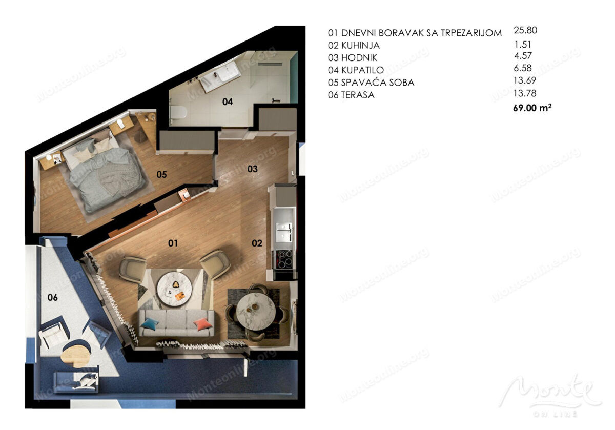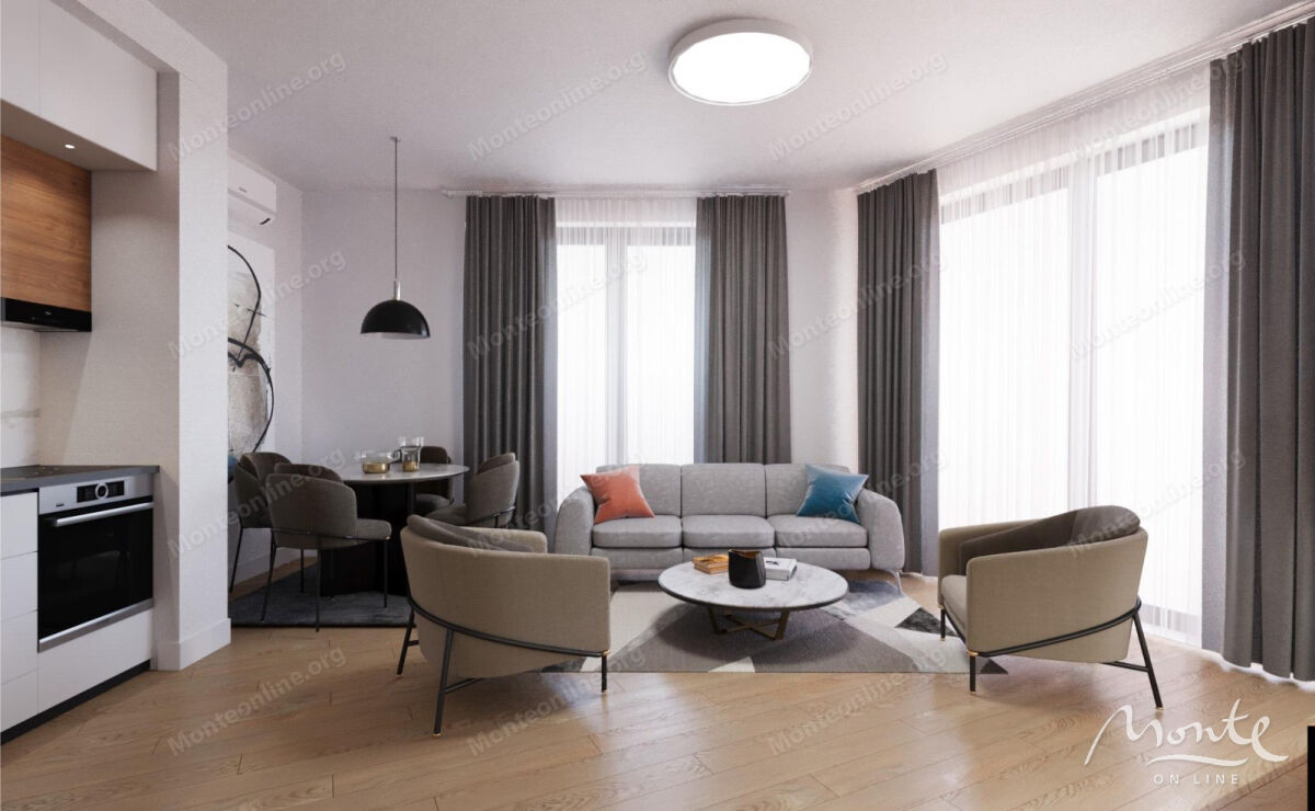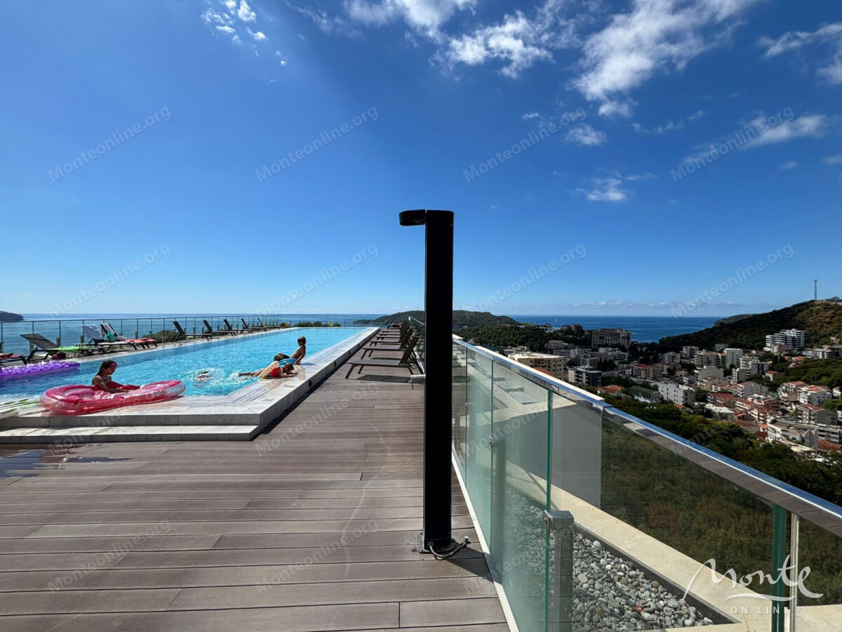We present for sale spacious 1-bedroom apartments with an area of 69 sq. m, located on the 3rd floor of a modern residential complex in Bečići, Budva. The apartment offers a beautiful sea view, and the presence of a terrace creates the perfect place for relaxation. The price of the apartments includes a garage space (12 m²) and a storage room (5.24 m²). The feature of the complex is that it is located a 10-minute walk from the Bečići promenade, in close proximity to key infrastructure and entertainment. A 7 km long promenade is available for walks and relaxation, and three large beaches are within walking distance. The Old Town of Budva can be reached by the promenade in 20 minutes on foot. The Tivat airport is a 30-minute drive away, and the Podgorica airport is 1 hour away. The complex is already completed. Residents have access to a rooftop pool where they can sunbathe and enjoy a great view of the sea. There is covered underground parking for 69 spaces with individual storage rooms, as well as a cozy inner courtyard with a gazebo and a barbecue area. This is an excellent choice for comfortable permanent living, summer vacations, or a profitable investment in one of the most popular coastal areas of Montenegro.