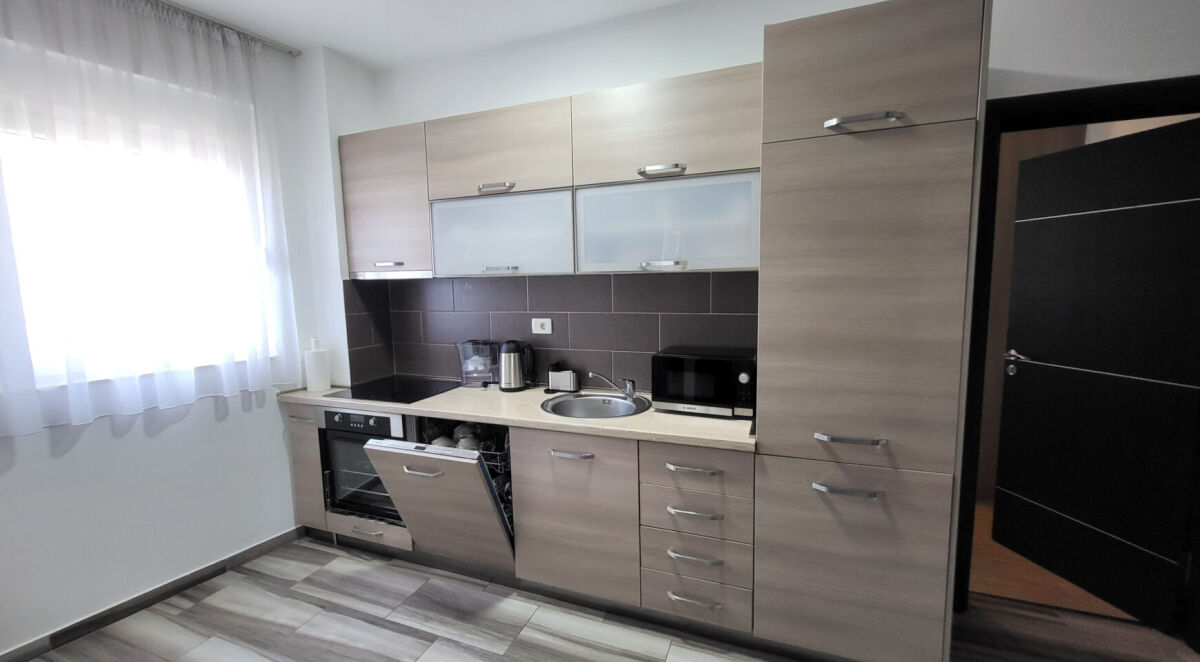 Two-bedroom apartment for sale in Becici, Montenegro. 📍The apartment is located near the Idea supermarket, just 200 meters from the sea. A bus stop is located directly below the building, and a Mixmarkt store is nearby. Apartment features: Area: 67 m² Layout: hallway, living room, separate kitchen area, dining area, two bedrooms, bathroom, terrace West- and northwest-facing windows Floor: 2nd floor, elevator Year built: 2012 The apartment is furnished and equipped. It has good rental potential during the summer season due to its location.