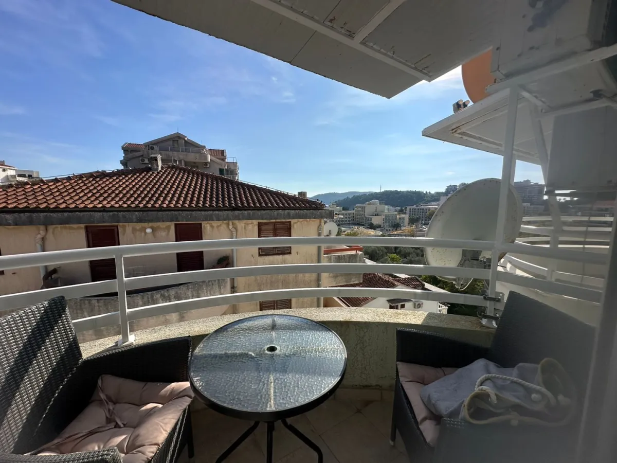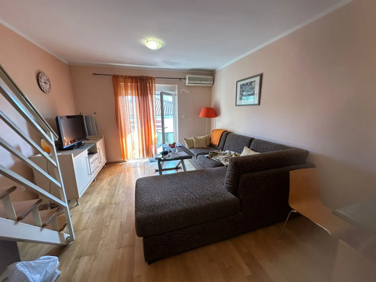 For sale in Becici. One-bedroom duplex apartment for sale. 52 m². Garage included in the price. Furnished. Building has an elevator. 5th floor.