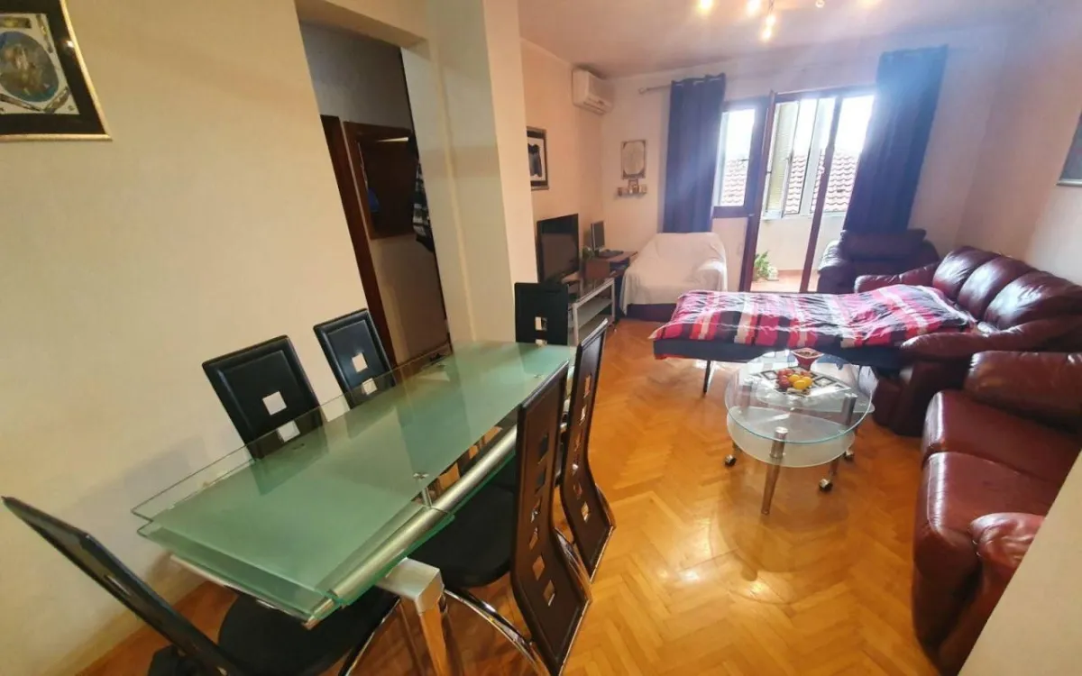For sale: ID 7409. This two-bedroom apartment is located in a quiet area of Budva called Dubovica. All city amenities are within walking distance. Total area: 70 m² + basement. Layout: 2 bedrooms, 2 bathrooms, living room with dining area, separate kitchen, 2 terraces (one glazed, the other closed with a sea view). Sunny side. All documents in order.