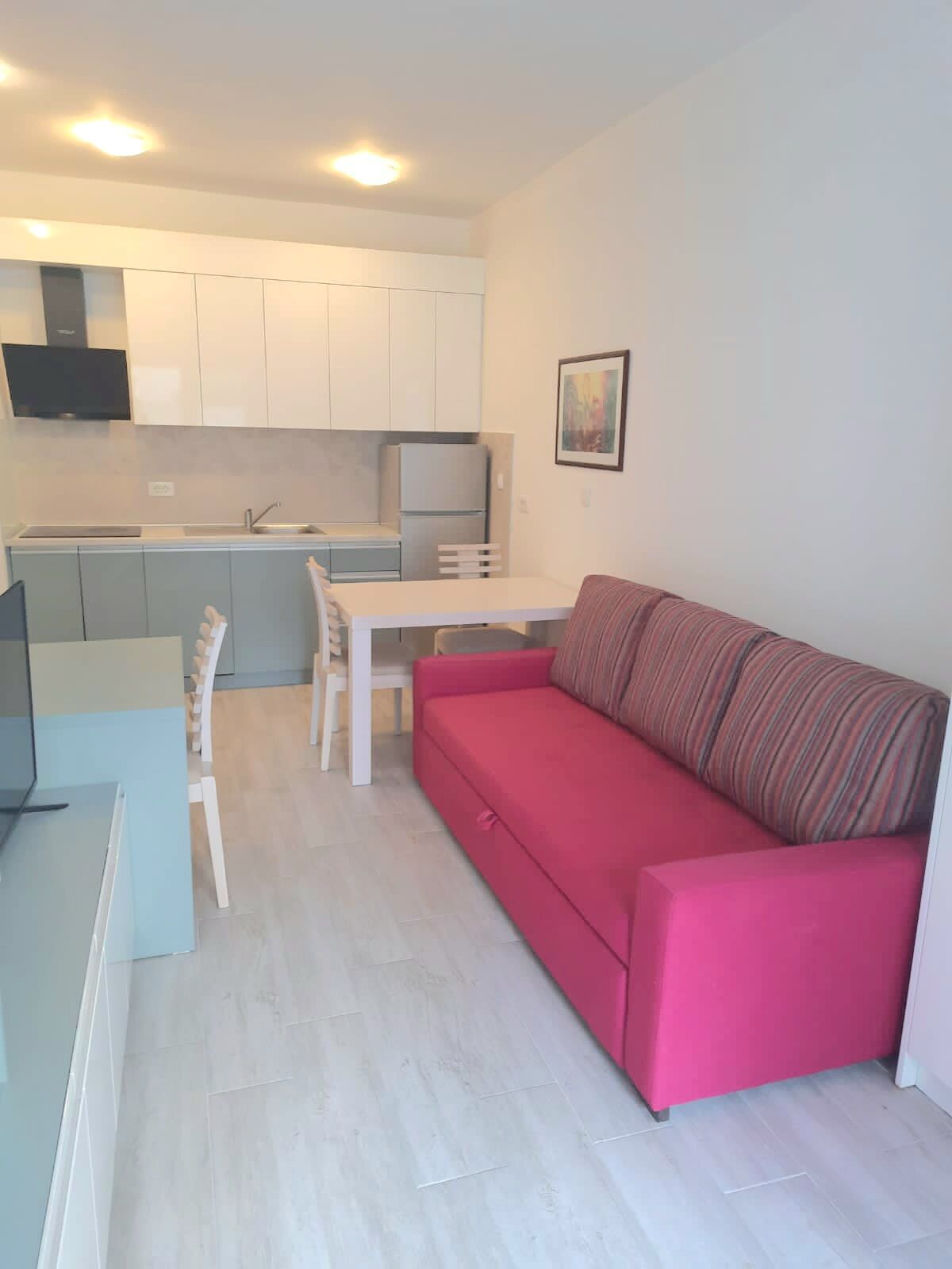 Budva! A apartment is for sale from the developer near the sea! The area of the apartment is 35m2 + 24m2 courtyard. The building was constructed in 2022, the apartment is located on a high first floor, fully equipped with modern furniture and appliances, underfloor heating, fruit trees in the courtyard, privacy and silence. The apartment has a separate bedroom, a living room with a kitchen, a bathroom, and a terrace. All infrastructure is within walking distance: school, supermarket, beach, bus station, 7 minutes walk to the center. A great offer for living and investment. The price is 131,000€, the buyer is exempt from paying a 3% tax.