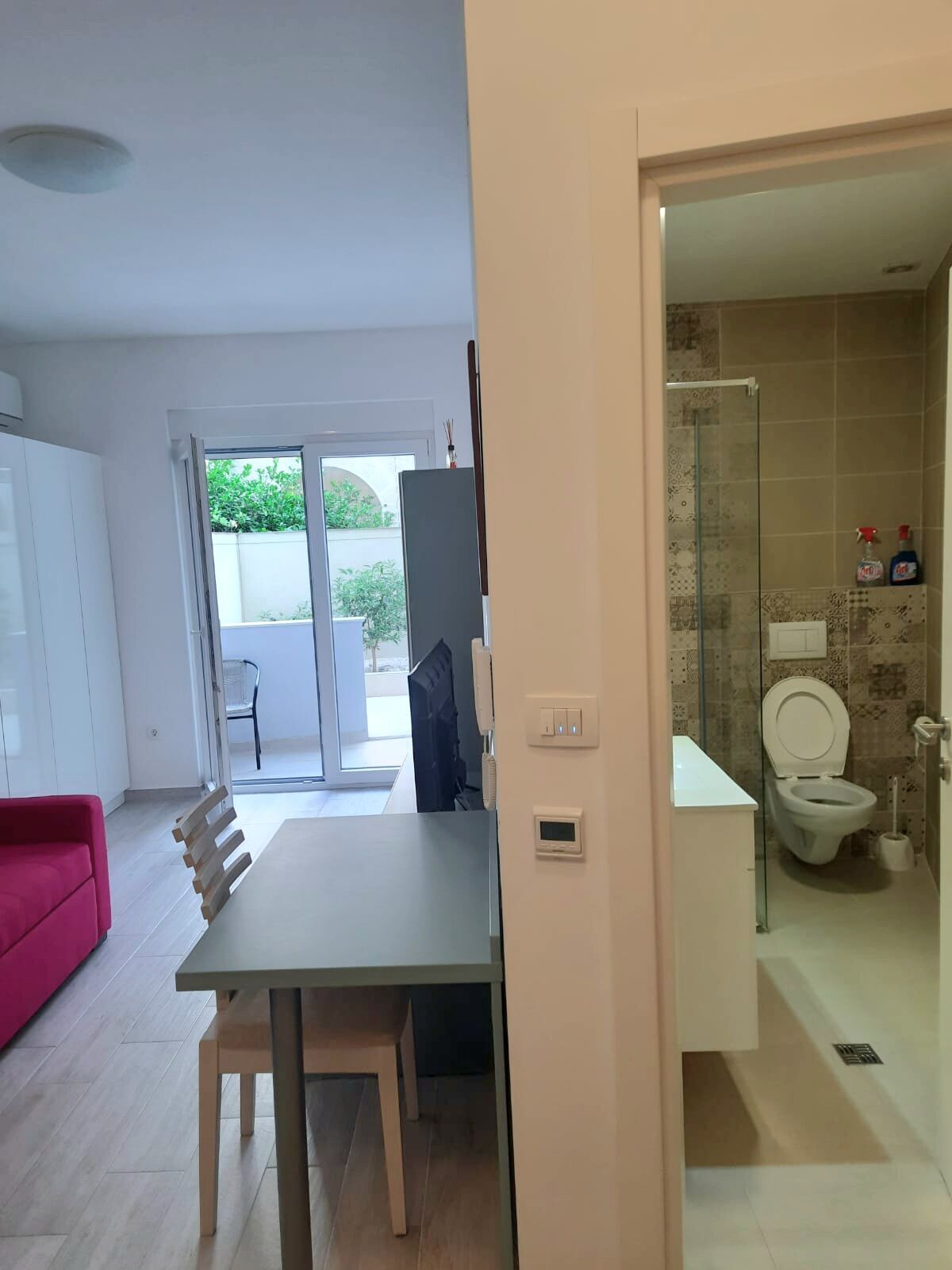 Budva! A apartment is for sale from the developer near the sea! The area of the apartment is 35m2 + 24m2 courtyard. The building was constructed in 2022, the apartment is located on a high first floor, fully equipped with modern furniture and appliances, underfloor heating, fruit trees in the courtyard, privacy and silence. The apartment has a separate bedroom, a living room with a kitchen, a bathroom, and a terrace. All infrastructure is within walking distance: school, supermarket, beach, bus station, 7 minutes walk to the center. A great offer for living and investment. The price is 131,000€, the buyer is exempt from paying a 3% tax.