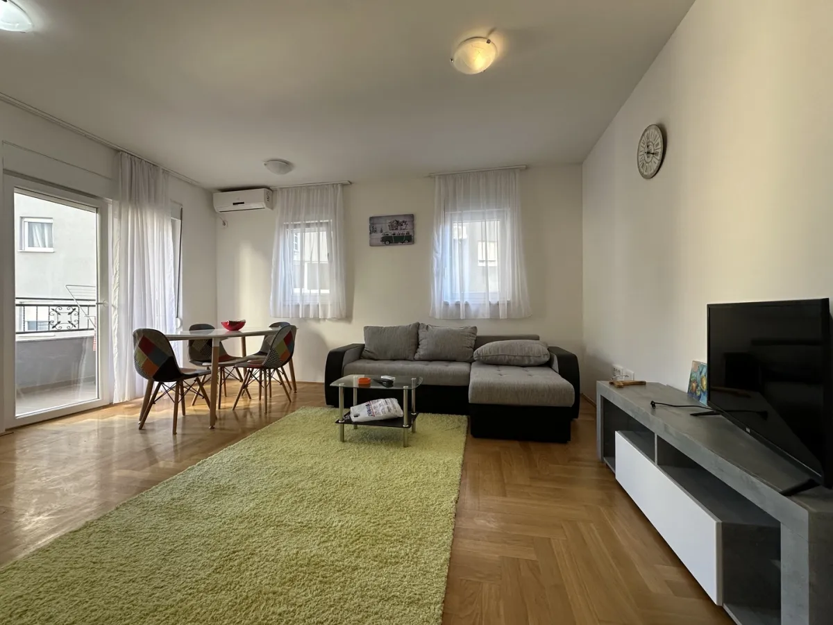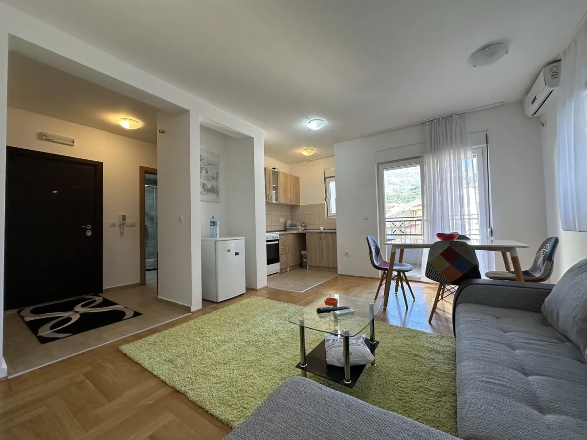 Budva, #969: Two-bedroom apartment for sale in a new building. Second floor, elevator, parquet flooring, two bathrooms, terrace with mountain views, fully furnished, parquet flooring. Nearby is a large Mega Mall shopping center, supermarket, cafes, and restaurants. The center is a 10-minute walk away, and the bus station is a 5-minute walk away.