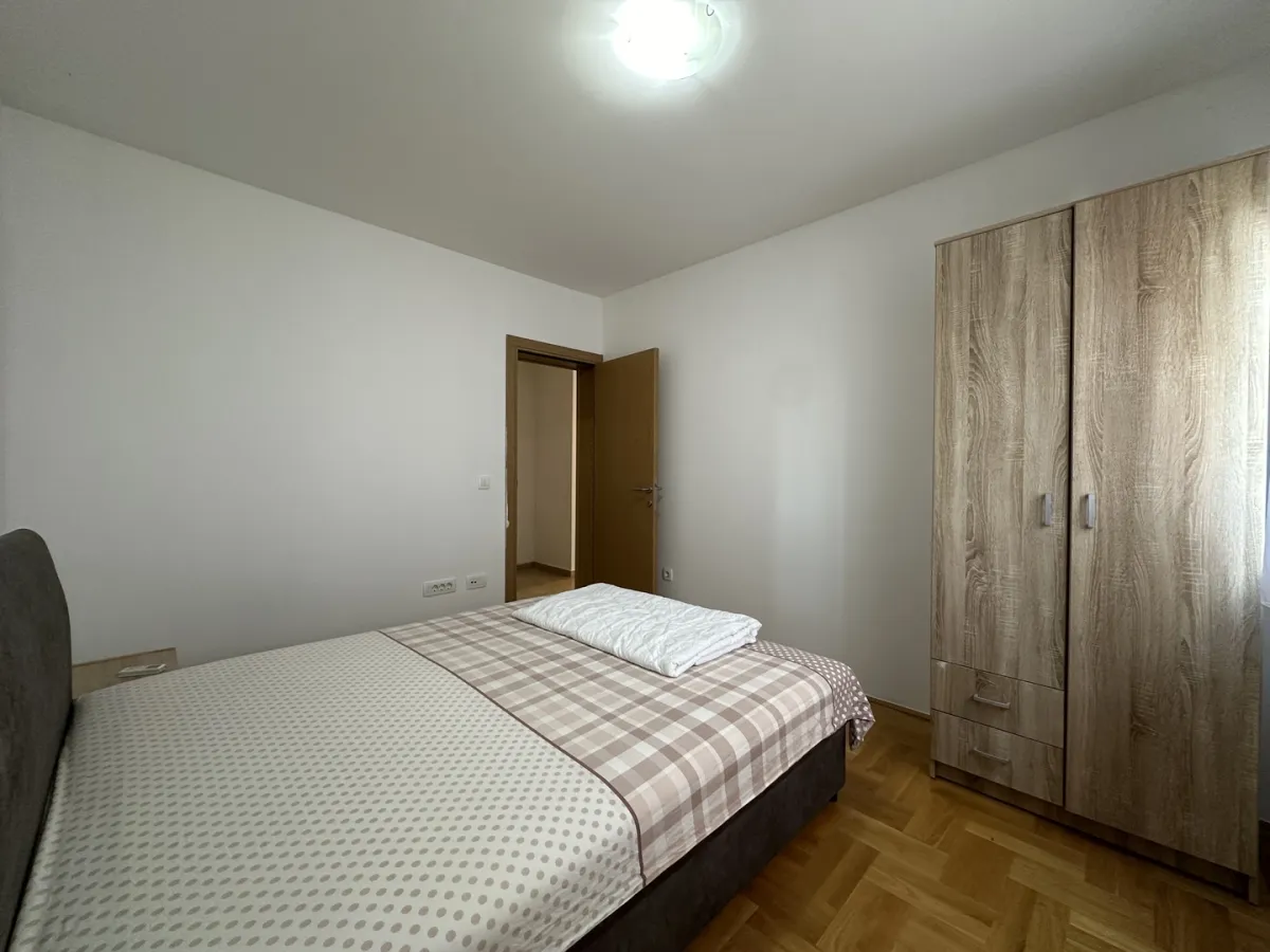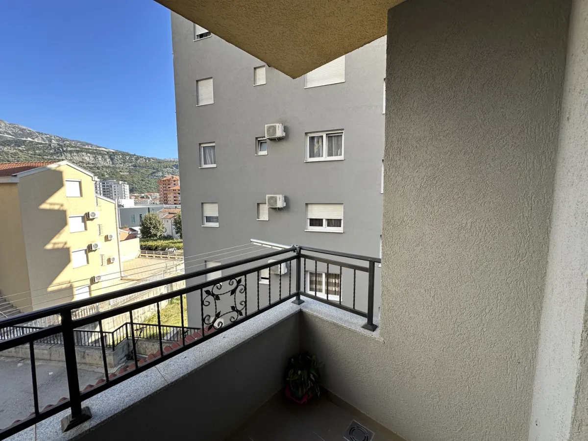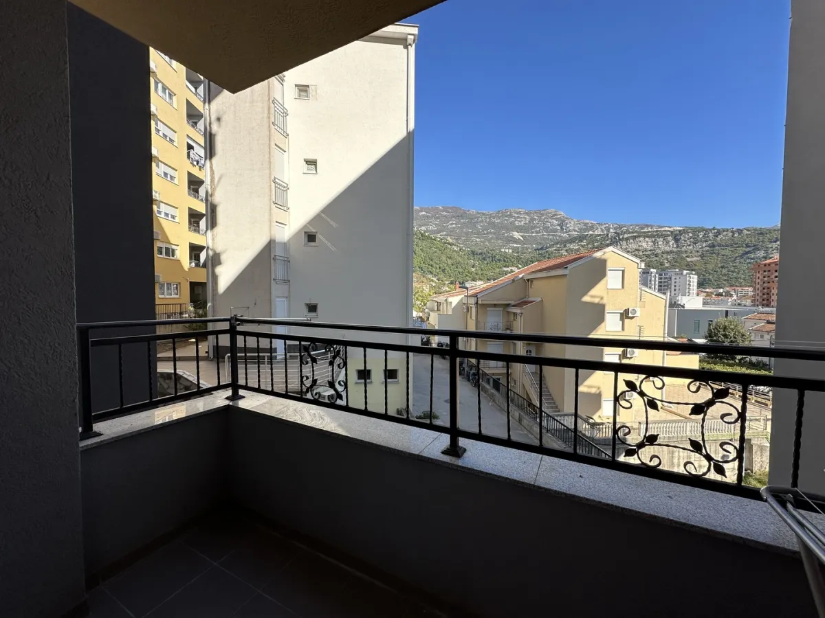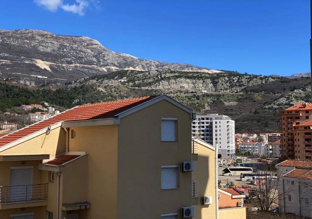 Budva, #969: Two-bedroom apartment for sale in a new building. Second floor, elevator, parquet flooring, two bathrooms, terrace with mountain views, fully furnished, parquet flooring. Nearby is a large Mega Mall shopping center, supermarket, cafes, and restaurants. The center is a 10-minute walk away, and the bus station is a 5-minute walk away.