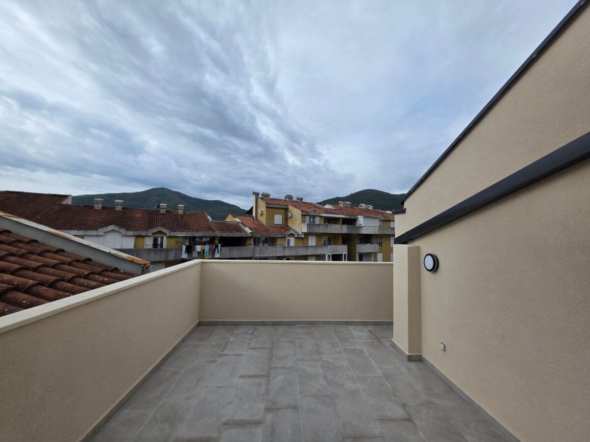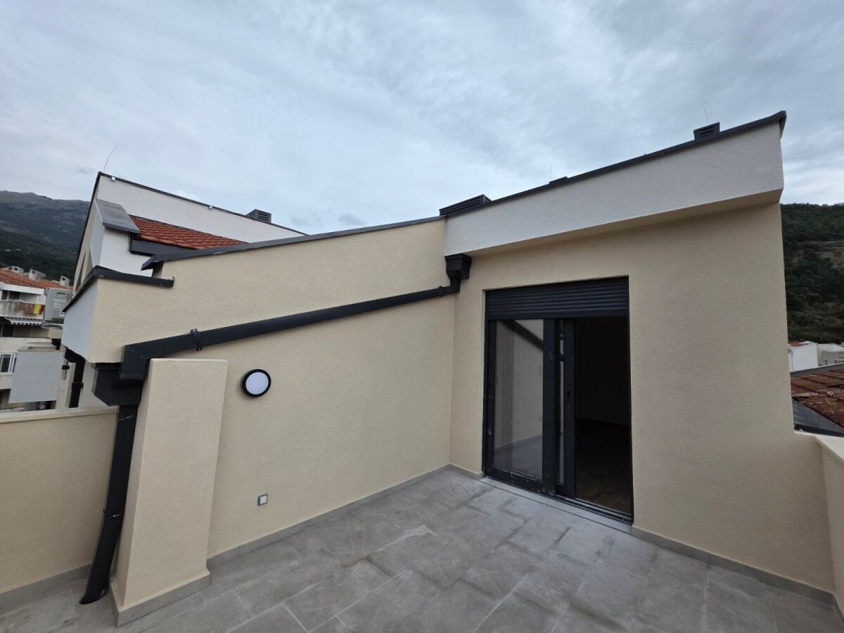 For sale: One-bedroom apartment of 71.08 m² in a new residential and commercial building – Budva, Adok. The apartment is located in the attic of the building. This residential unit includes the possibility of adding a 18m² gallery with full standing height, within the stated price. This building offers modern design and functionality, ideal for comfortable family living or a smart investment. The location is excellent – in close proximity to the beach, shops, restaurants, and all essential amenities, providing a perfect blend of urban convenience and peaceful surroundings. The building consists of two underground levels, a ground floor, three floors, and a penthouse floor (2B+G+3F+PH). Construction completion and move-in are planned for summer 2025. Available units include one-bedroom apartments from 35 m² to 52 m², two-bedroom apartments from 97 m² to 115 m², and luxury penthouses from 116 m² to 180 m². Commercial spaces ranging from 23 m² to 42 m² are also available, ideal for various business activities. The investor offers flexible payment plans and tax incentives. Buyers are exempt from the 3% property transfer tax. Garage spaces are available: on level -2 for €21,000 and on level -1 for €23,000. Special attention has been given to landscaping – a spacious green area with parking is located on the southeast side, while on the northwest side, residents can enjoy an existing green square that will be further enhanced as part of the project. These zones contribute to a pleasant atmosphere, ensuring the perfect balance between urban living and a natural environment. This property represents an excellent opportunity for living or investing in the heart of Budva, with numerous advantages and quality construction. Flexible payment terms and a variety of residential and commercial units allow every buyer to find their perfect space.