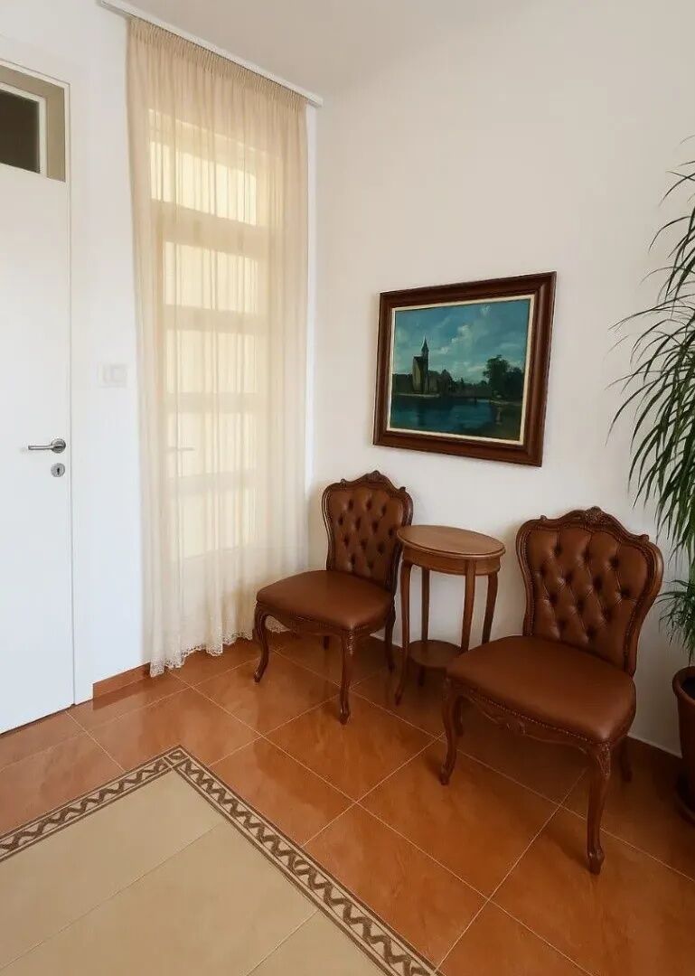 I am selling a luxurious one-bedroom apartment. The apartment, with an area of 47 m², is located on Babilonija street, just 800 meters from the sea. It is situated on the second floor of a neat and well-maintained building, in close proximity to a school, bookstore, and other amenities necessary for everyday life. The apartment is fully furnished and equipped with modern and high-quality furniture. It has a glazed balcony made with aluminum joinery from Greek profiles, ideal for enjoying throughout the year. The floors are made of high-quality oak parquet, which further emphasizes the luxury and warmth of the space. A parking space is provided.