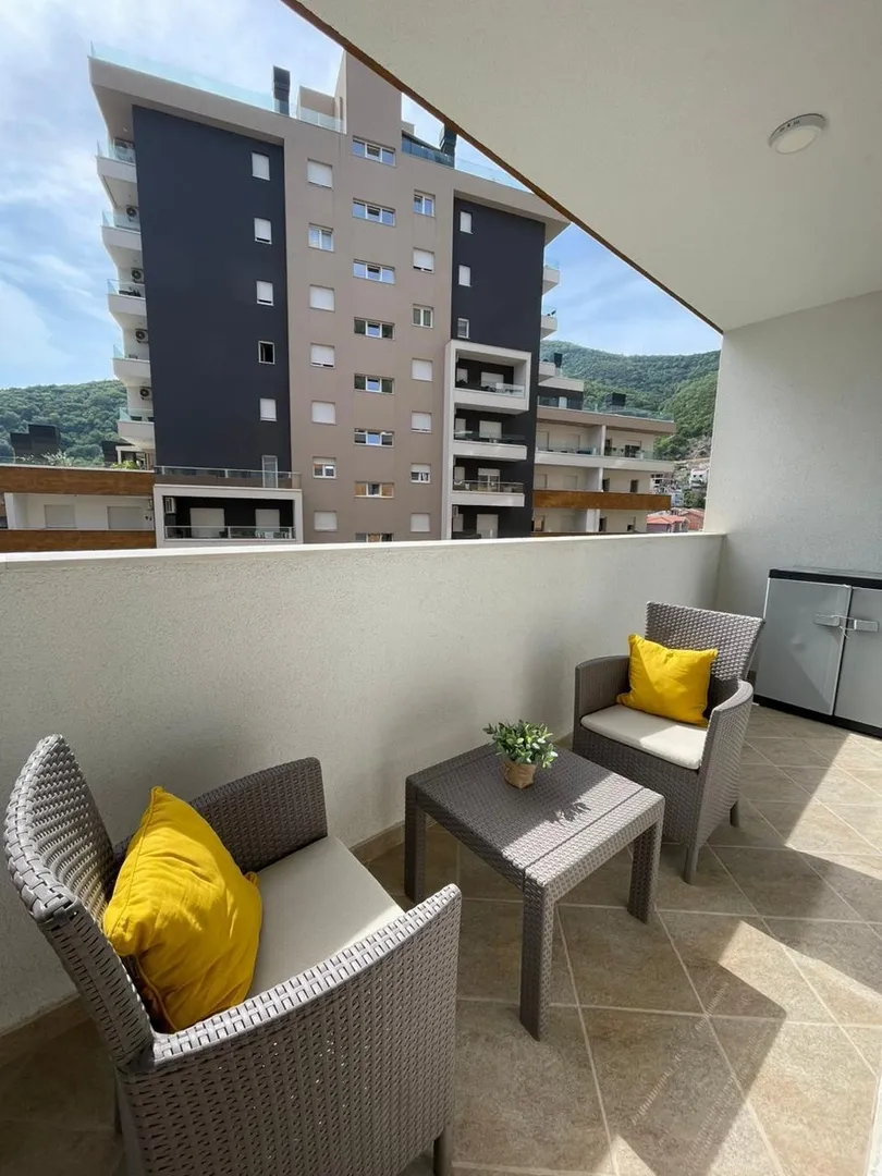 Budva for sale #7510. This new 46 m² apartment is fully furnished and sold with the furniture. It features a living room with a kitchen, a bedroom, a bathroom, and a terrace. It's located on the first floor of a building with two elevators. Old Bakery offers numerous cafes, restaurants, and a large supermarket, making it a comfortable place to live. The beach and city center are a 10-minute walk away. An excellent choice for comfortable living or for renting out. No additional investment required!