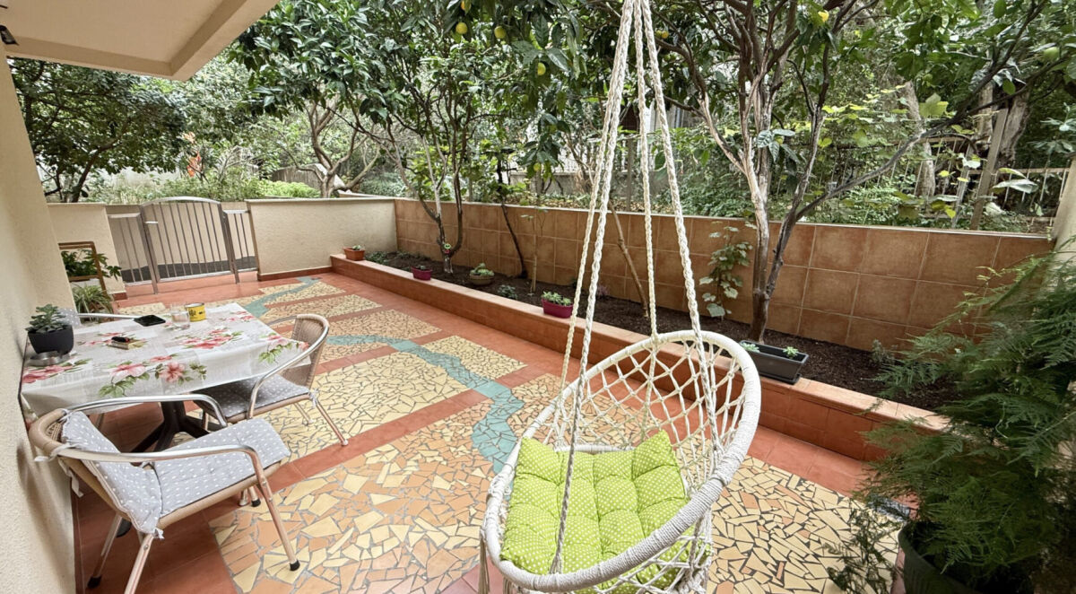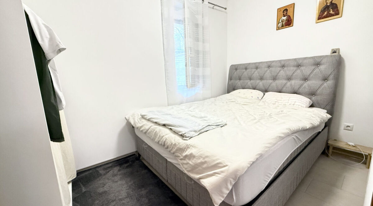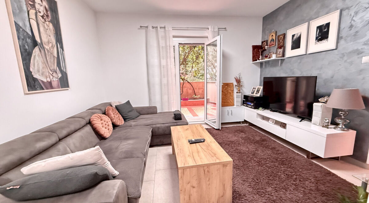 One-bedroom apartment, 44 m² + 35 m² terrace, ground floor, behind the TechnoPlus store. The apartment is fully furnished and ready for comfortable occupancy or rental. Great area, not uphill. Nearby are a school, HDL supermarket, pharmacies, and cafes. The beach is a 7-minute walk away. A huge terrace for pleasant pastimes and a 4 m² storage room are also included. Excellent offer at no additional cost!