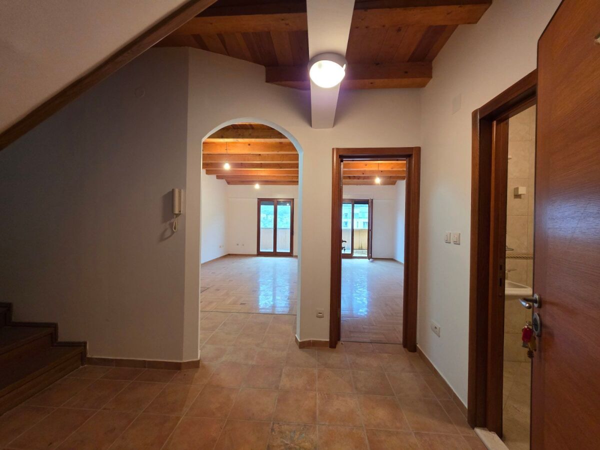 A new, spacious four-bedroom apartment of 100 m² is for sale, located on the 9th floor of a modern building with an elevator in the Rozino neighborhood, Budva. The apartment has a functional layout and is ideal for family living, with a peaceful environment and all urban amenities nearby. The apartment consists of a comfortable living room, kitchen and dining area, four bedrooms, two bathrooms, and a terrace with a beautiful view of the mountains and the city. Thanks to its high floor, the apartment is bright throughout the entire day. The location is extremely attractive – the property is situated near the new roundabout with a fountain, the main bypass road, and the Mega Mall shopping center. Schools, supermarkets, a sports center, the bus station, and all necessary daily amenities are within close reach. This apartment represents an excellent opportunity for family living, as well as an investment for long-term renting, due to high demand in this area.