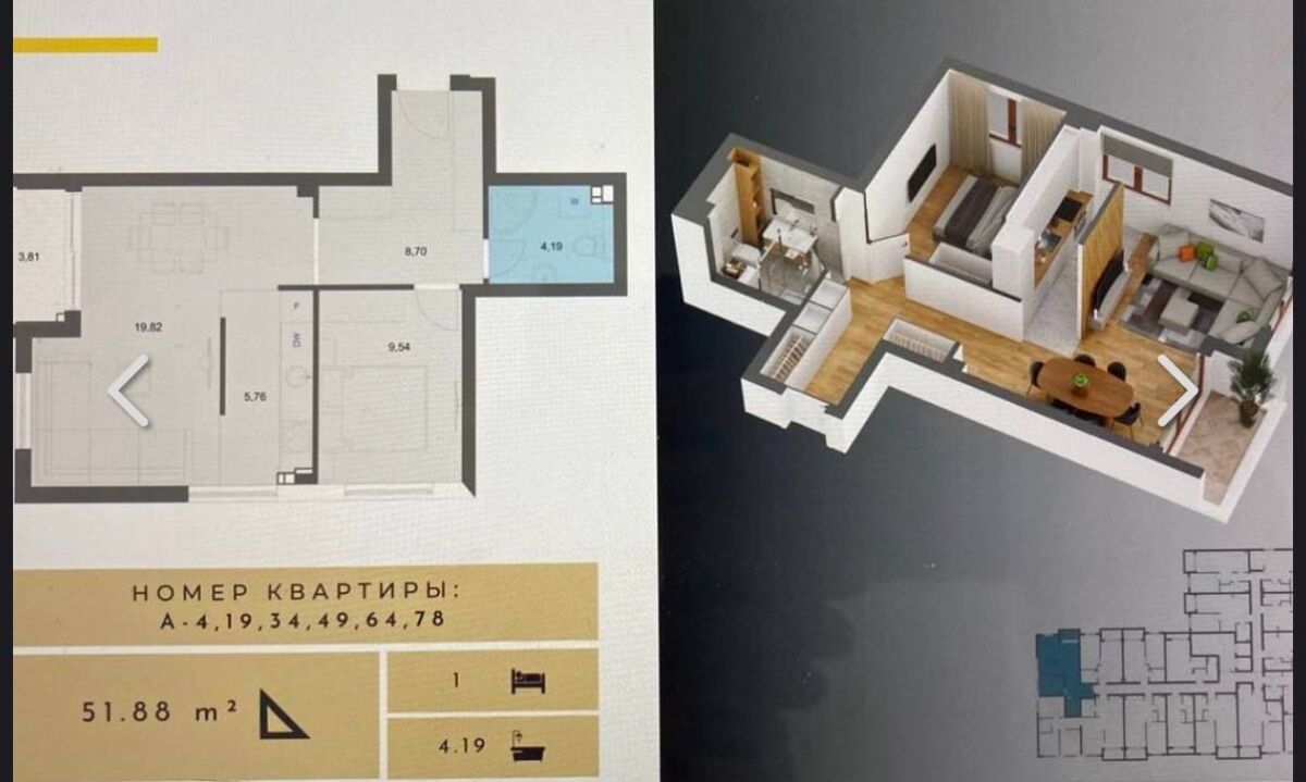 - Total area52 м2