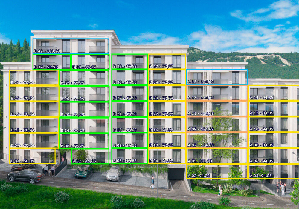 A new luxury residential complex in one of the most attractive locations of the Budva Riviera The buyer is exempt from paying the state tax on the turnover of real estate in the amount of 3% of the value of the Object of purchase – the sale is carried out "first-hand" from the Developer. The date of commissioning is 12/01/2027. Two residential six and seven storey buildings The total living area is 3797 sq.m. There are 57 luxury apartments in total, of which: - studio apartments – 8 apartments, ranging from 28 to 30 sq.m., with one bathroom - one-bedroom apartments – 16 apartments ranging from 39 to 55 sq.m. , with one bathroom - two–bedroom apartments - 27 apartments ranging in size from 56 to 86 sq.m., with one and two bathrooms - three-bedroom apartments – 6 apartments ranging from 109 to 135 sq.m., with two and three bathrooms The floor height is 3.9 m, which makes it possible to arrange additional sleeping terraces (!!!). A bonus option for owners of studio apartments, which, if you wish, can turn into one-bedroom apartments (!!!). At the construction stage, you will be able to equip your studio apartment by agreement with the Developer, for an additional fee. Modern design, high-quality construction and finishing materials, high-class thermal and sound insulation Round-the-clock video surveillance High-speed fiber-optic Internet A management company that offers not only the maintenance of an object and territory, but also passive income for you from renting out your property, where you receive 70% of the income from the total rental amount, while not wasting time, nerves and money on finding Clients and working with them, on the maintenance and repairs of your property, and paying taxes – the Management Company will do everything for you (!!!). Each apartment will be provided with a parking space in an underground garage or in an outdoor parking lot. There are 57 seats in total, they are included in the Certificate of Ownership, and are purchased for a fee.: - parking space – 30,000 euros - parking space – 18.000 euros The complex has a centralized water treatment system Each apartment has an autonomous ventilation system (separate shaft) The complex has a backup generator, which frees residents from problems with power outages. The garage has an active smoke extraction and fire extinguishing system. Common areas are equipped with motion sensors and video surveillance The balconies are glazed, which provides additional living space, given the mild local climate. The facades of the buildings are illuminated by an LED lighting system Panoramic windows in apartments The buyer is provided with a choice of floor coverings – natural board, large-format porcelain tile Steel entrance doors with sound insulation Interior doors are veneered with expensive wood Electrical fittings, air conditioners, plumbing, aluminum window blocks – all from the world's best brands At the time of publication: - one-bedroom apartments sold - apartments worth less than 100,000 euros are available – six - apartments, priced from 250 to 300 thousand euros, available - sixteen - apartments, at a special price, costing 2,950 and 3,300 euros per 1 sq.m. – twelve The offer is at a special price – it consists of apartments of a larger format – at a lower price. This offer is limited in time. Ask our managers about its dates and the list of apartments. The developer offers installment payment – until the end of construction. Installment terms: - initial payment of 50% of the purchase price - monthly payment in equal installments – until the end of construction Our specific recommendation: Studio Apartment B-36 Fifth floor Mountain view The area is 28.89 sq.m. The cost of one square meter is 3700 euros Price: - with 100% payment to a bank account, 106893 euros - with an installment payment of 117582 euros - after the commissioning of the Object, 138960 euros Garage space – 30,000 euros Parking space 18.000 euros Floor plans with the layout of the apartments, and the Price list for all apartments, can be found in the Additional files at the bottom of the publication. Examples of interiors are provided for general understanding, they are not part of the offer. We provide interior design and furnishing services, both regular and exclusive. You can order from us any interior that your imagination draws. The apartment is ideal for permanent residence We will help you with obtaining a residence permit, opening a company, and other necessary steps to assimilate into beautiful and ever–blooming Montenegro. Additional information is available upon request, with Client registration. Any issues of optimizing prices, payment schemes, and deadlines are decided only by the Seller, at a personal meeting.