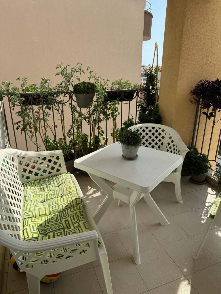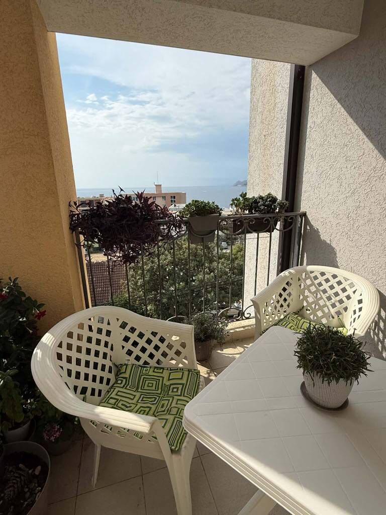 The area of the apartment is 68 sq.m. 200 meters to the sea, near Kalamper, 4th floor (building with 5 floors) with a garage, 2 terraces, 2 bedrooms, city water.