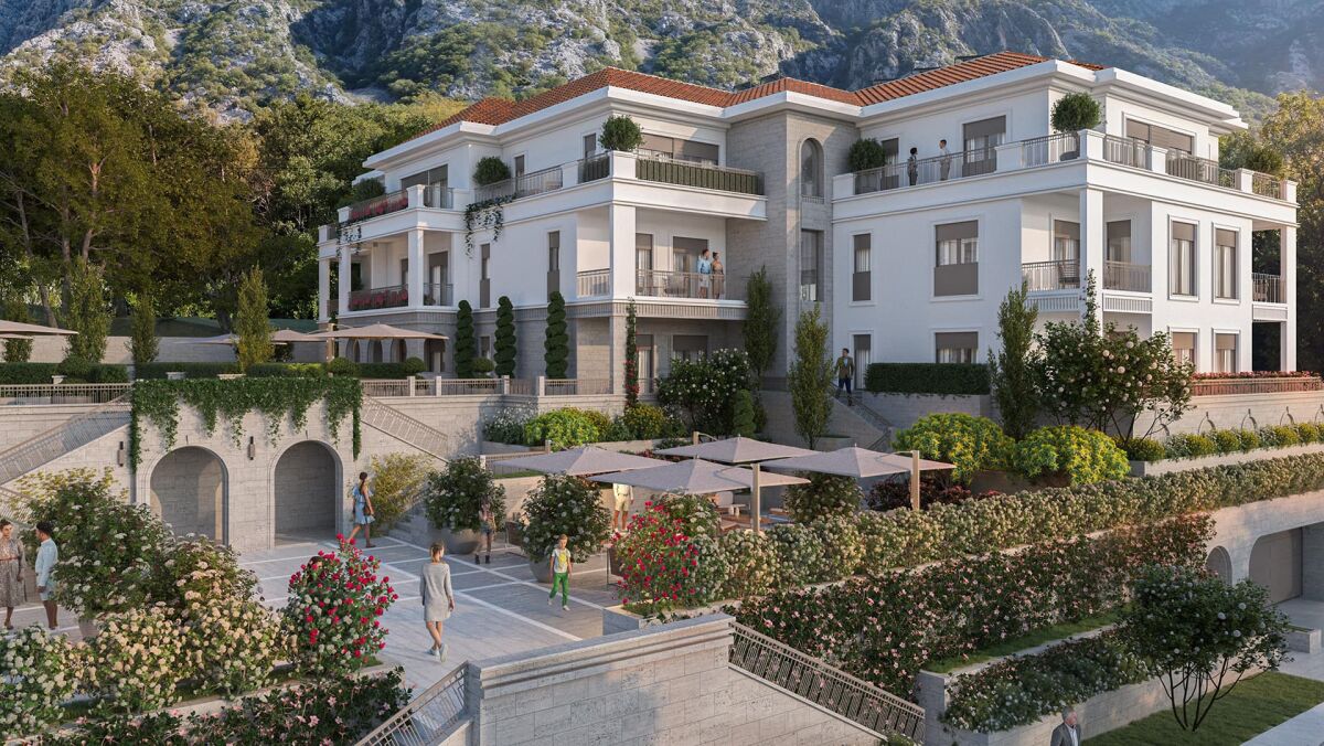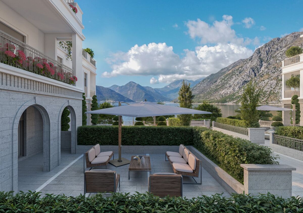 Brand new exclusive complex, consisting of two independent buildings Le Soleil and La Lune, is currently under construction in the peaceful and scenic neighborhood of Dobrota, only a minute’s walk from the sea. Surrounded by nature and located in the UNESCO-protected Bay of Kotor, this development offers a rare opportunity for both investment and comfortable living. Apartment details: • Size from: 74.77 m² (two-bedroom with terrace) • Completion date: December 2027 Complex Infrastructure: • Outdoor swimming pool • Private parking • Sauna & fitness center • Service facilities (salon, laundry, reception, etc.) Technical Specifications: • Aluminum windows & doors with thermal breaks and triple-glazed glass filled with argon • Electric shutters • Armored entrance doors with smart lock option • Interior doors with magnetic locks and concealed hinges • Sanitary equipment by Catalano, Grohe, Villeroy & Boch • Inverter AC or multi-split systems • Underfloor heating in bathrooms