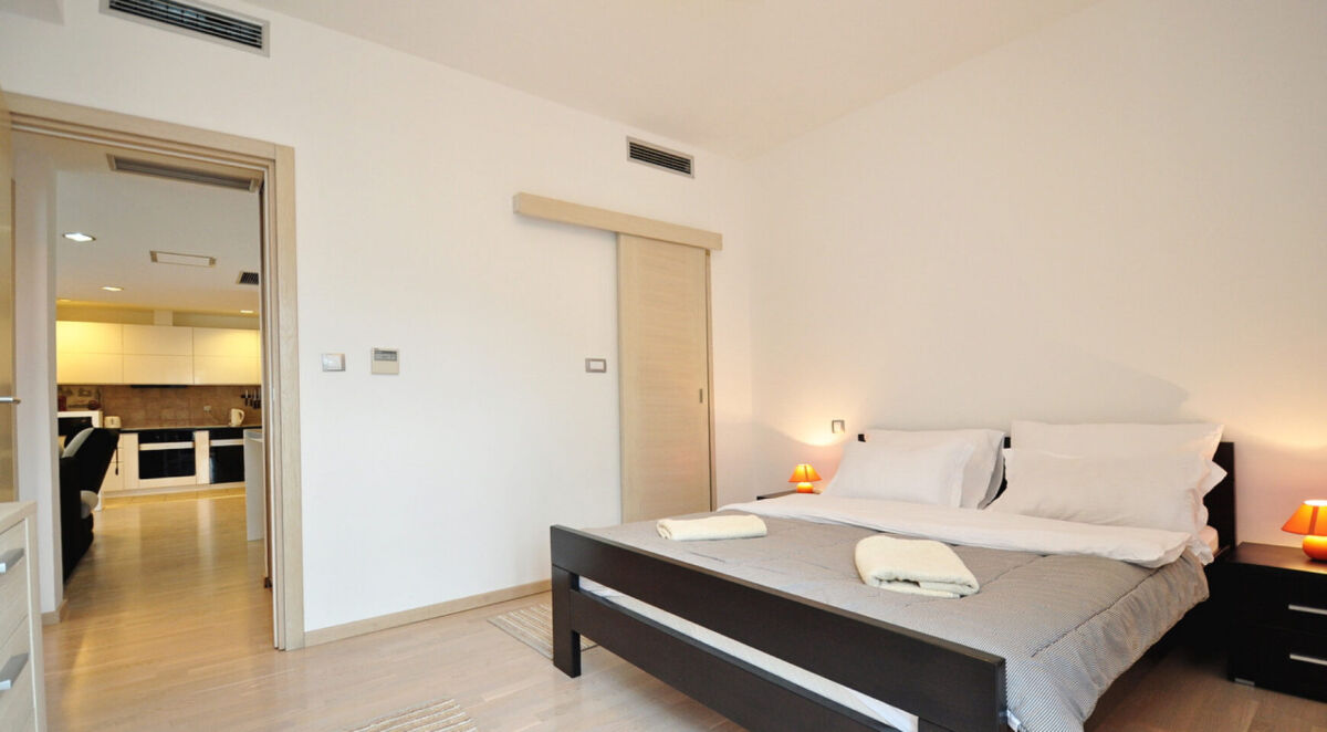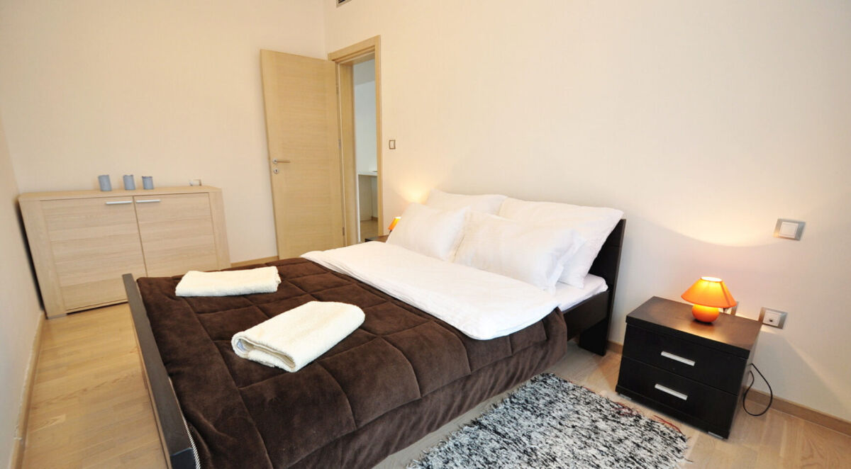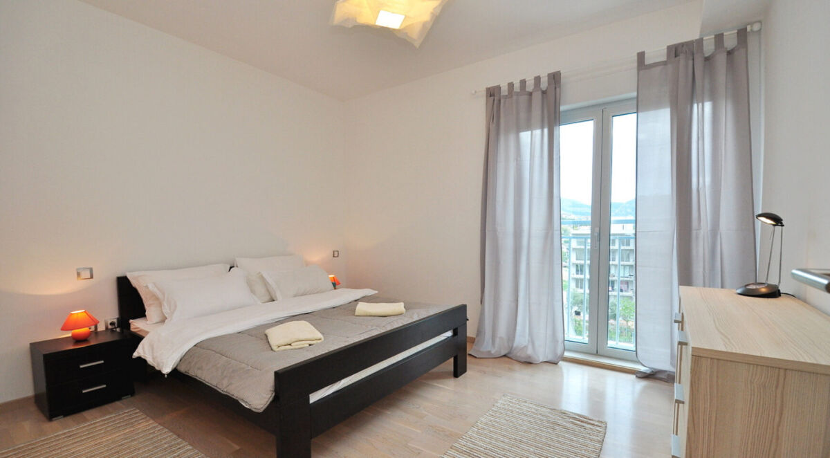 This two-bedroom, two-bathroom apartment measures 76 sq m (plus a private 100 sq m terrace)! The apartment is located in a modern complex (built in 2013) featuring a large gated community, ample parking, two swimming pools, and a spacious garden. The complex is just a 5-6-minute walk from the coastline and the nearest beach. The apartment is on the third floor and has access to a huge rooftop terrace with panoramic views of the bay. The terrace could be converted into a pergola or an area with beautiful plants. The apartment features: an entrance hall, a living room with a seating area, modular furniture, and a TV; a separate kitchen area equipped with all necessary appliances; two bathrooms, one of which is a full bath; and two bedrooms. Nearby amenities include a shop, a bakery, and a fitness club. The Dobrota embankment offers a wide selection of cafes and restaurants offering cuisine to suit every taste.