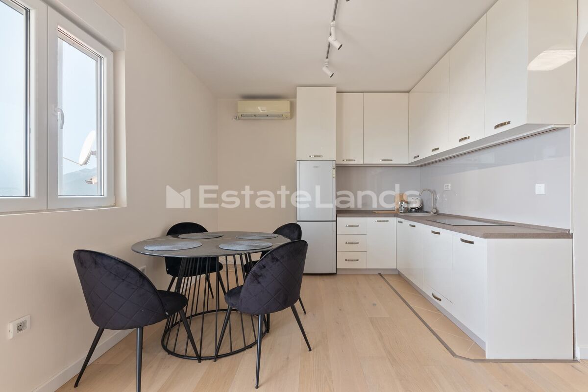 A rare offer for Tivat and Donja Lastva! The apartment is located on a high first floor and occupies the entire level of the residential building. It features a very functional and comfortable layout. Sold fully furnished and equipped. Clean title documents. A true highlight of the apartment is the spacious terrace with side glazing that protects from wind and rain, as well as a stunning panoramic view of the city and the sea, which can no longer be blocked by any new construction. The apartment is situated on a quiet dead-end street. The sea, beaches, promenade, cafés, restaurants, and several grocery stores are all within 700 meters. Area: 69 m² Layout: • Spacious kitchen with dining area • Living room • 2 bedrooms • Bathroom • Entrance hall • Large terrace with an amazing view 🚙 Parking space in front of the house, with the option to purchase a private parking spot. 💬 Contact us for more information or to schedule a viewing.