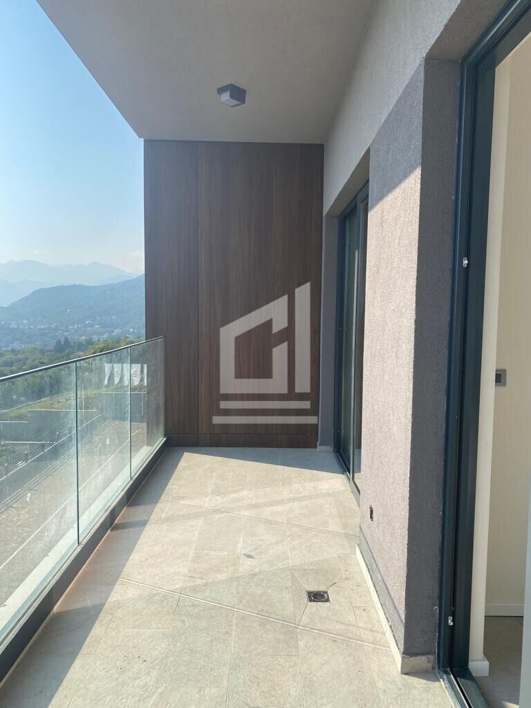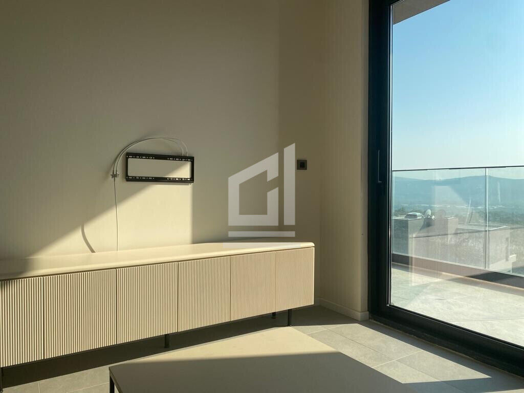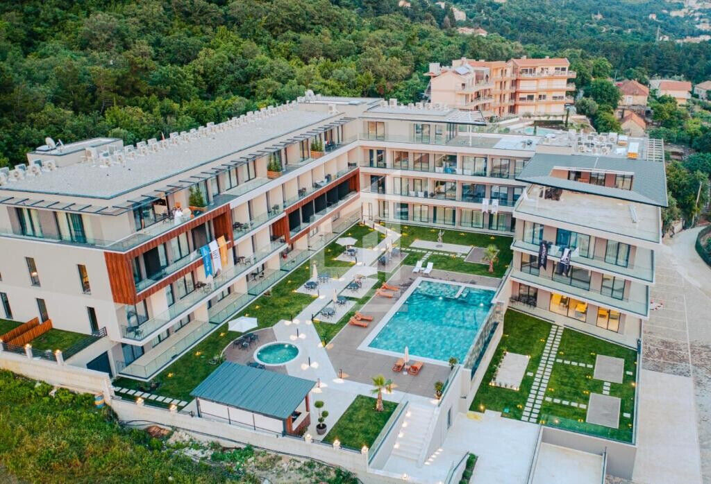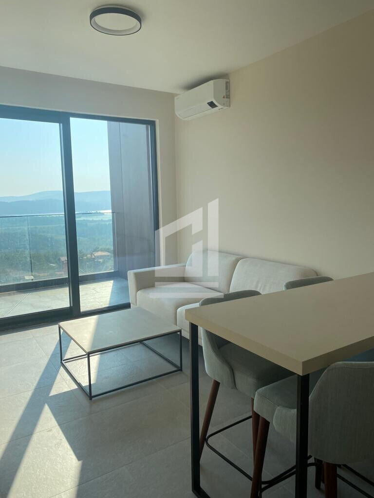 A one-bedroom apartment is located within the exclusive Royal Blue resort. The resort has several accompanying amenities: a reception, a pool, always available to users, a bar, and soon a restaurant and SPA and Wellness center. The resort operates on the principle of a condo hotel, where the apartment can be rented out under the management of the resort. The apartment is fully furnished in a modern and contemporary style, never used before. The living area and room have a large shared terrace and a sea view.