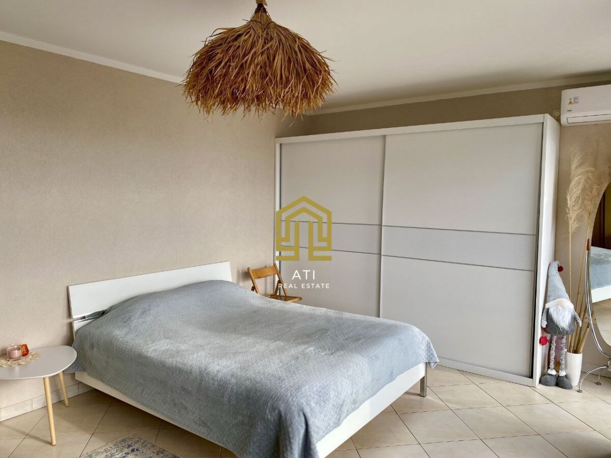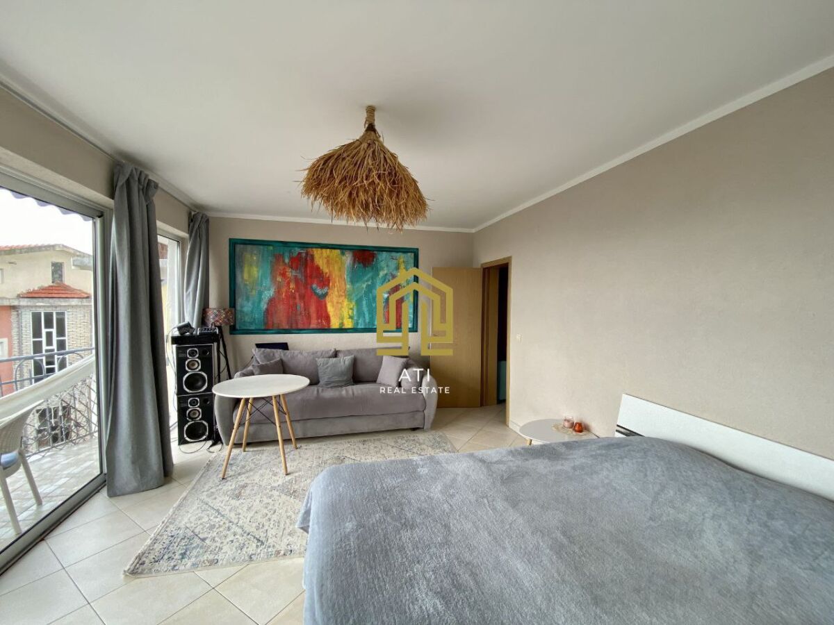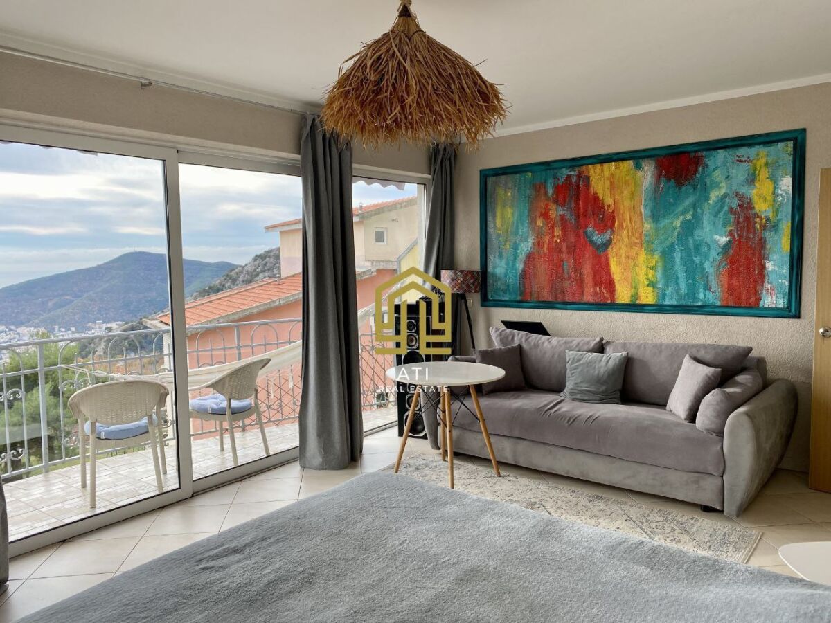 ID-551 Comfortable and bright apartment with a living room of 52 m2 + 2 balconies. Location: Markovichi Only 10 minutes drive by car to Budva, away from the tourist crowds, but with quick access to the city. The apartment is legalized, documents are in order. Second floor, plenty of light and comfort. The apartment is completely renovated and furnished - come and live. The facade is insulated: warm in winter, cool in summer. Air conditioning for hot days and a fireplace stove for atmospheric winter evenings. Layout: - kitchen - living room - large bedroom with panoramic windows and a view of the sea and Budva (can easily be divided into two rooms if desired) - 2 balconies