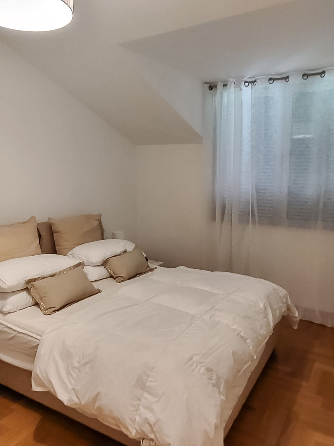 📍 Location: Lavender Bay, Morinj (municipality of Kotor) A modern and spacious two-bedroom penthouse apartment with two bathrooms located in the beautiful Lavender Bay complex in Morinj. The complex is situated in a quiet area and offers an infinity pool and a SPA center. Just 100 meters from the beach, restaurants, and a supermarket, the property boasts excellent views of the Bay of Kotor. Lavender Bay is very popular with tourists, allowing owners to earn solid additional income from rentals Tivat Airport is 30 minutes away, while Dubrovnik Airport is about one hour’s drive 🛏 Layout: • kitchen with dining area • living room • terrace with amazing views of the Boka Bay • master bedroom with en-suite bathroom • bedroom • bathroom Amenities: • air conditioning • fully equipped kitchen • washing machine • underfloor heating in bathroom • parquet flooring in the bedroom • infinity pool and SPA • children’s playground on site 🚙 The apartment price includes a private parking space