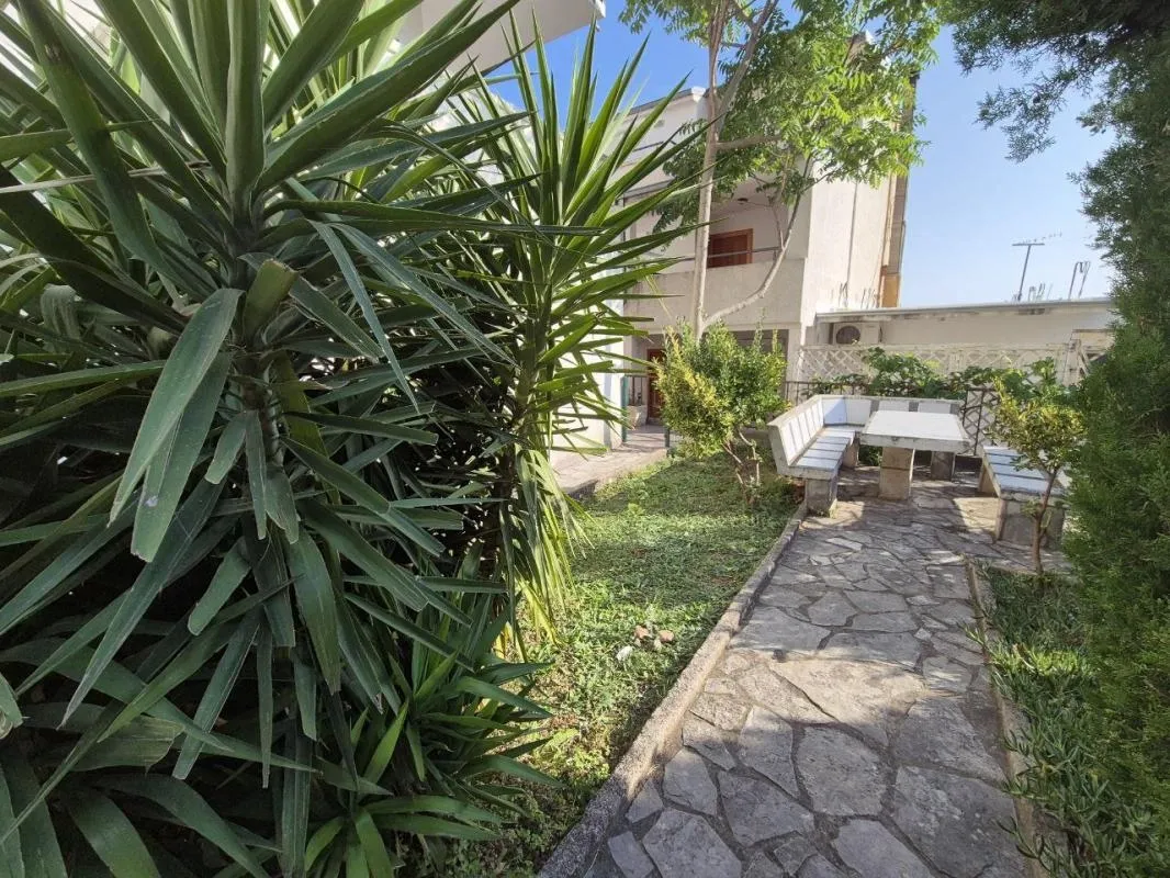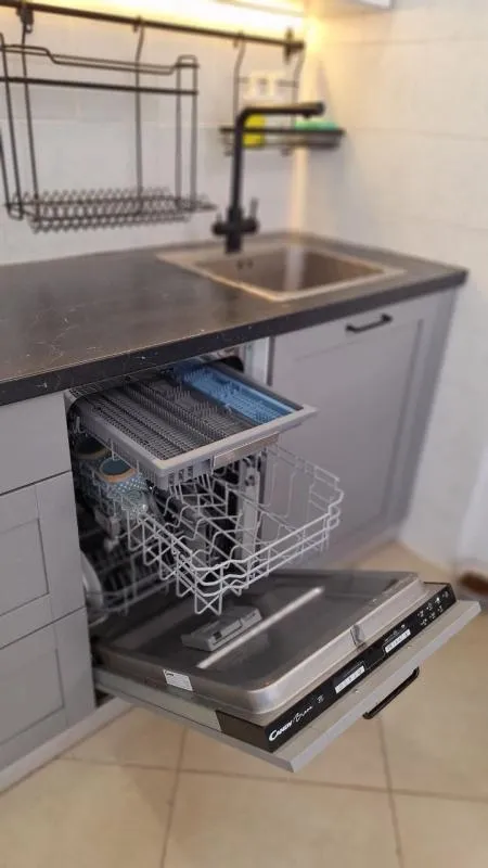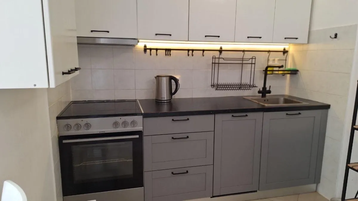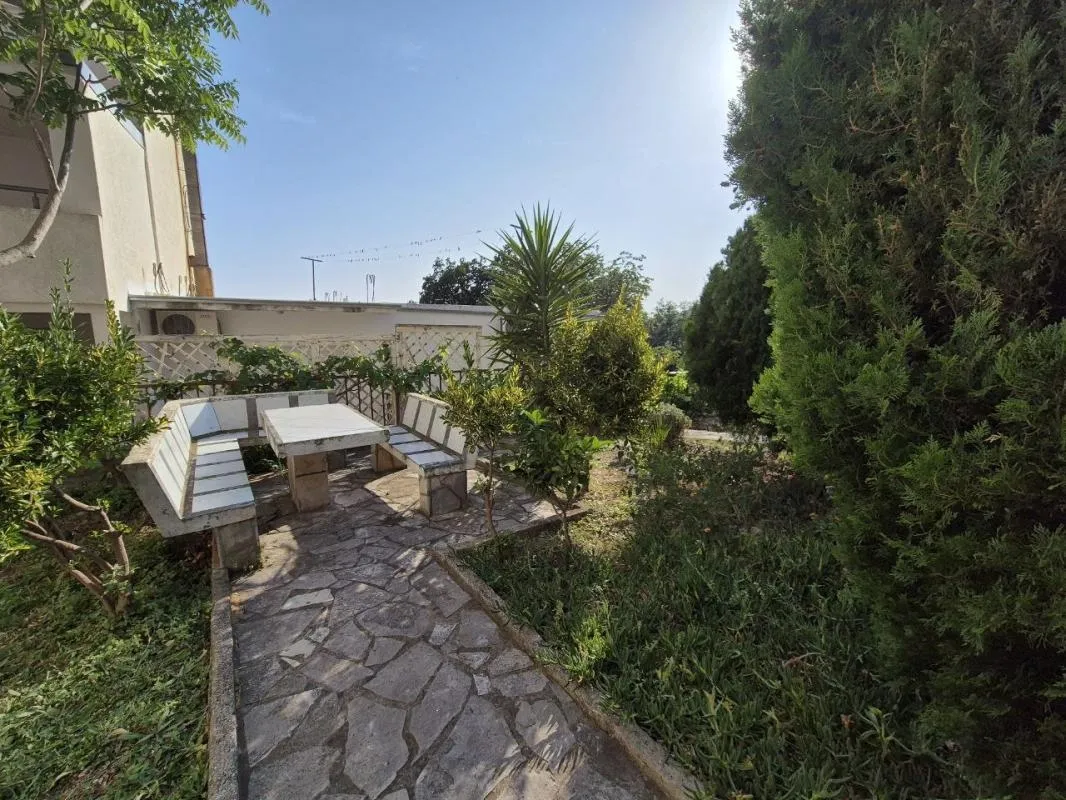 Petrovac for sale #7434. This cozy 2-bedroom apartment is located on the 1st Montenegrin floor (2nd) in a 4-story building. It features a comfortable entrance hall with a storage closet, a living room with a large fold-out sofa with air conditioning, a new kitchen with a dishwasher, a dressing room or study area, one bedroom with a double bed and a wardrobe, and a second bedroom with a bunk bed, a desk, and a wardrobe. It overlooks a quiet green courtyard and has a small sea view. The total area is 60 m2 (37 m2 + a closed terrace converted into a separate bedroom). The distance to the sea with a sandy beach is 650 meters. The bus station is a 2-minute walk. Shops, restaurants, cafes, and bakeries are a 5-7-minute walk away. Enclosed green courtyard with a recreation area. Public parking is available near the building (there are always spaces). Good rental potential.