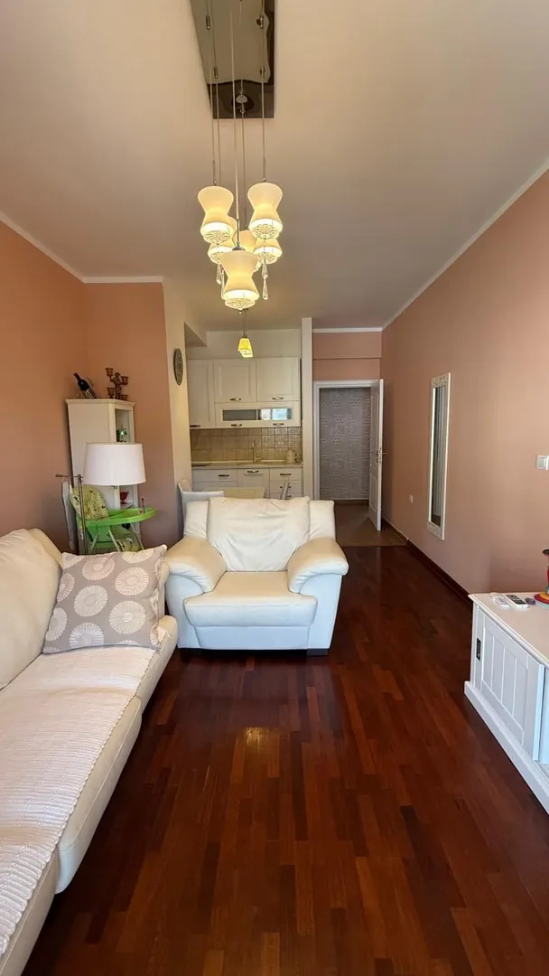 Sale of Petrovac No. 7472. Cozy apartment with a garage in Petrovac, 61 m². Garage: 18 m² (included in the price), 4th floor (there is an elevator). 10 minutes walk to the beach. 5 minutes walk to the supermarket. The apartment is fully furnished and equipped in a classic European style with elements of Provence. Air conditioners are installed in each room, parquet flooring, and blinds on all windows. Sold with all furniture and appliances. Used only for summer vacations, in excellent condition. The building was constructed about 10 years ago. Great offer with no additional investments!