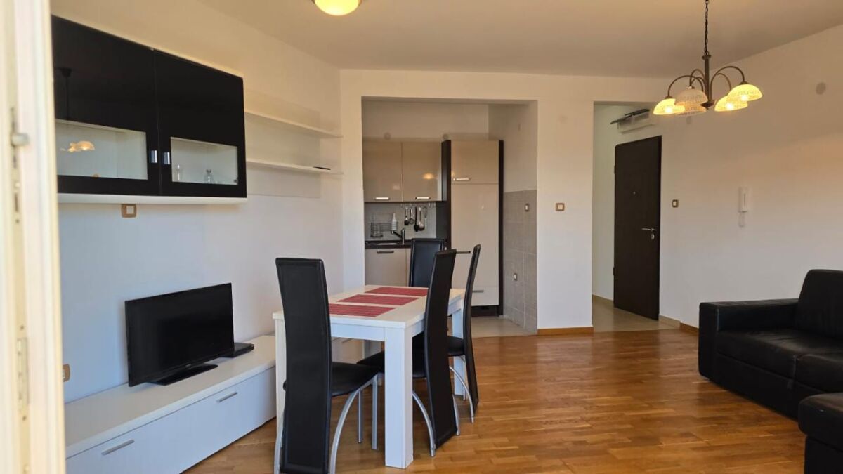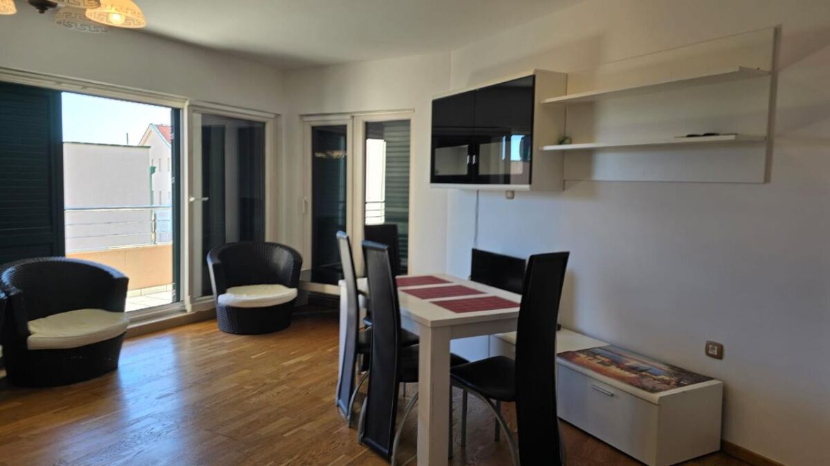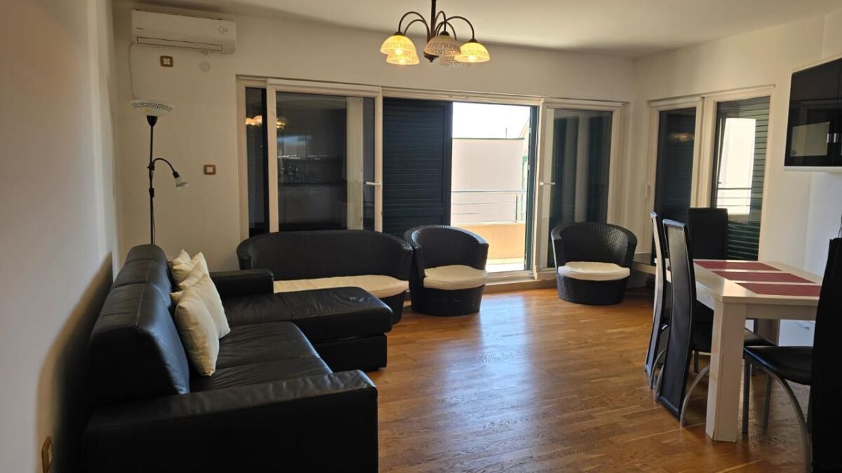 Petrovac, for sale is an apartment with a total area of 77 m2 located on the 4th floor of a new building without an elevator. The balcony offers a magical view of the city and the sea. The beach is 150m away. The apartment has: 2 bedrooms, a bathroom with a bathtub, a spacious living room-kitchen. There is access to the balcony with a relaxation area from the living room and the bedroom. Very bright, cozy apartment, fully equipped with necessary household appliances and furniture. An air conditioner is installed. Internet and satellite television are connected. The price of the apartment includes a garage for one parking space with an area of 13 m². The promenade with restaurants, cafes, and entertainment is located 100 meters away, and the nearest supermarket is a 2-minute walk. The apartment is located in a very quiet place, not far from the main attractions, but far enough from the city noise, especially in the summer season. Price 195,000 euros. Payment in cash in Montenegro or in Russia.