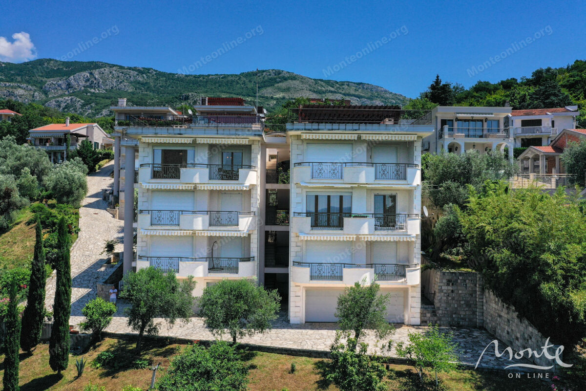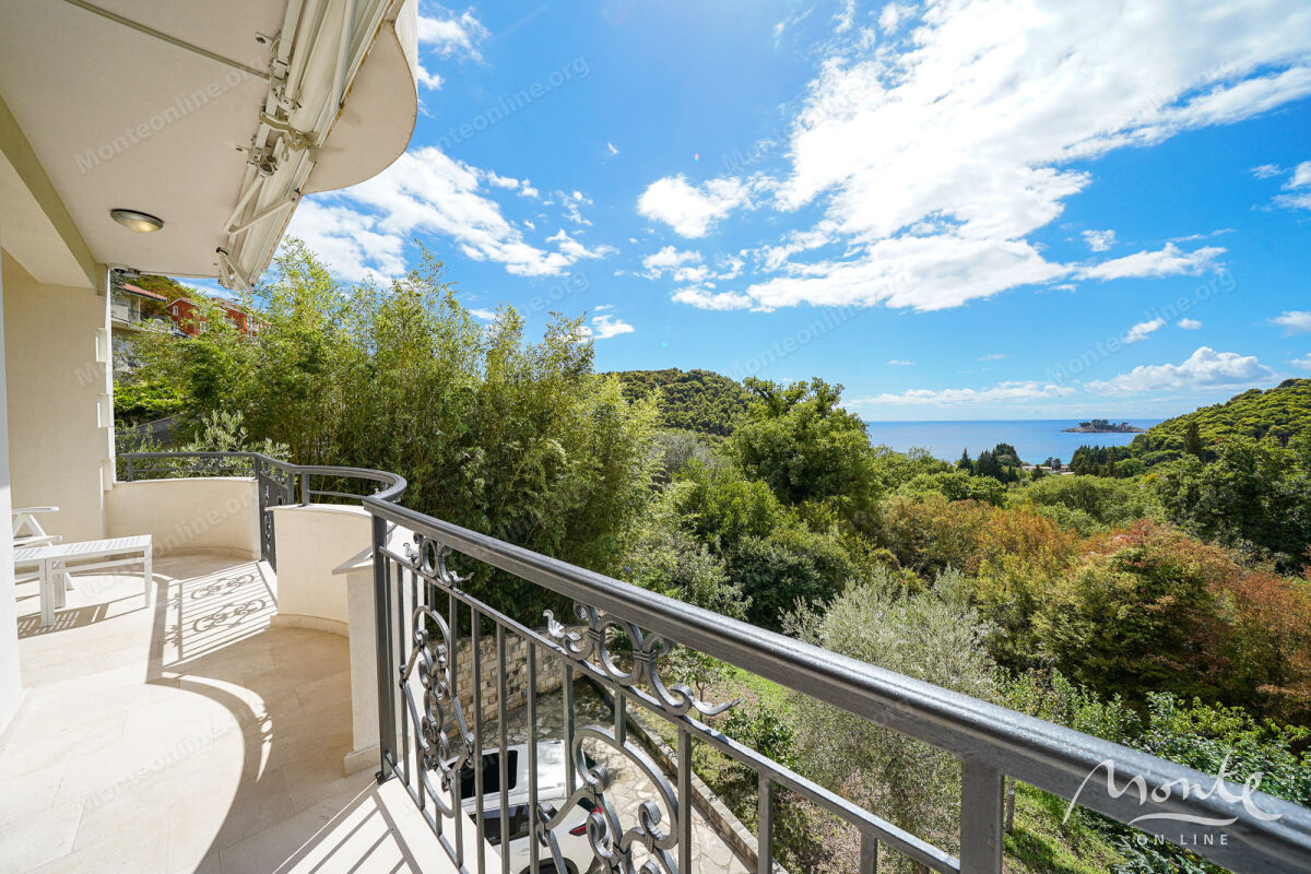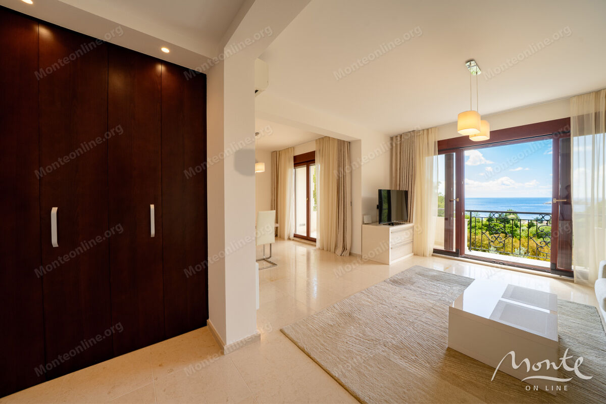 Stylish furnished apartment with 2 bedrooms in a premium complex above Lucica beach, Petrovac. The apartment is located on the 2nd floor (3rd from the ground) and consists of a living room, kitchen, two bedrooms, two bathrooms, and a terrace with a panoramic sea view. The complex is surrounded by greenery. In front of the house, there are mandarin, orange, fig, peach, olive trees, and a large number of flowers. Nearby is the magnificent sandy Lucica beach, from which you can take a scenic paved road to Petrovac. The price includes an individual closed garage and storage room. An exclusive complex of 6 houses, immersed in gardens and olive groves, combines modern architecture and natural harmony. The apartment is fully furnished with custom-made Italian furniture and is ready for living. The living room and terrace offer a panoramic view of the sea and olive groves. Apartment and finishing features: • Panoramic aluminum-wood windows with electric blinds. • Reinforced entrance doors. • Marble floors in the living room. • Parquet made of rare African wood species in the bedrooms. • Underfloor heating in the bathrooms. • Italian plumbing and finishing materials. • Air conditioning system (cooling/heating). • Video intercom, satellite TV with more than 100 Russian-speaking channels. • Open parking and well-maintained landscaped area. • Central city utilities. Location: • Lucica beach — only 700 m. • The city of Petrovac with a promenade, supermarkets, market, school, medical facilities, restaurants, and cafes — within walking distance. • A quiet resort town with plenty of greenery and olive trees. This apartment is the perfect choice for those who value premium quality, comfort, and privacy in one of the most picturesque places in the Adriatic.