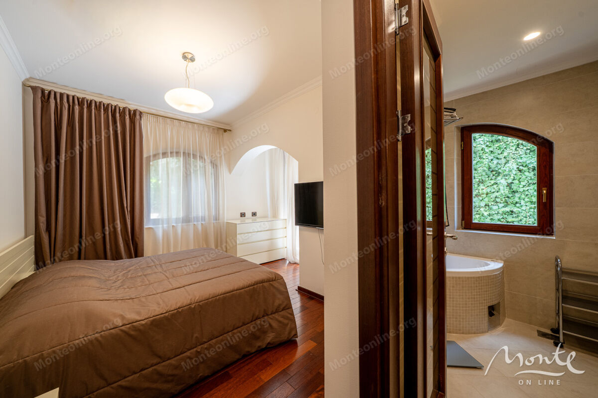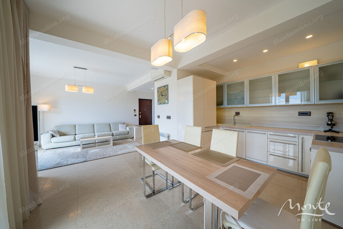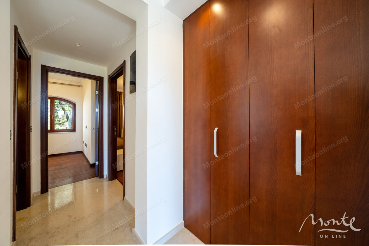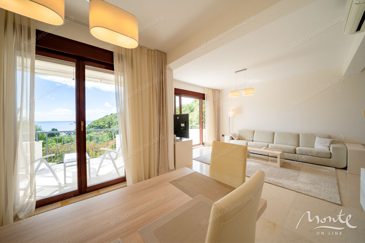 Stylish furnished apartment with 2 bedrooms in a premium complex above Lucica beach, Petrovac. The apartment is located on the 2nd floor (3rd from the ground) and consists of a living room, kitchen, two bedrooms, two bathrooms, and a terrace with a panoramic sea view. The complex is surrounded by greenery. In front of the house, there are mandarin, orange, fig, peach, olive trees, and a large number of flowers. Nearby is the magnificent sandy Lucica beach, from which you can take a scenic paved road to Petrovac. The price includes an individual closed garage and storage room. An exclusive complex of 6 houses, immersed in gardens and olive groves, combines modern architecture and natural harmony. The apartment is fully furnished with custom-made Italian furniture and is ready for living. The living room and terrace offer a panoramic view of the sea and olive groves. Apartment and finishing features: • Panoramic aluminum-wood windows with electric blinds. • Reinforced entrance doors. • Marble floors in the living room. • Parquet made of rare African wood species in the bedrooms. • Underfloor heating in the bathrooms. • Italian plumbing and finishing materials. • Air conditioning system (cooling/heating). • Video intercom, satellite TV with more than 100 Russian-speaking channels. • Open parking and well-maintained landscaped area. • Central city utilities. Location: • Lucica beach — only 700 m. • The city of Petrovac with a promenade, supermarkets, market, school, medical facilities, restaurants, and cafes — within walking distance. • A quiet resort town with plenty of greenery and olive trees. This apartment is the perfect choice for those who value premium quality, comfort, and privacy in one of the most picturesque places in the Adriatic.