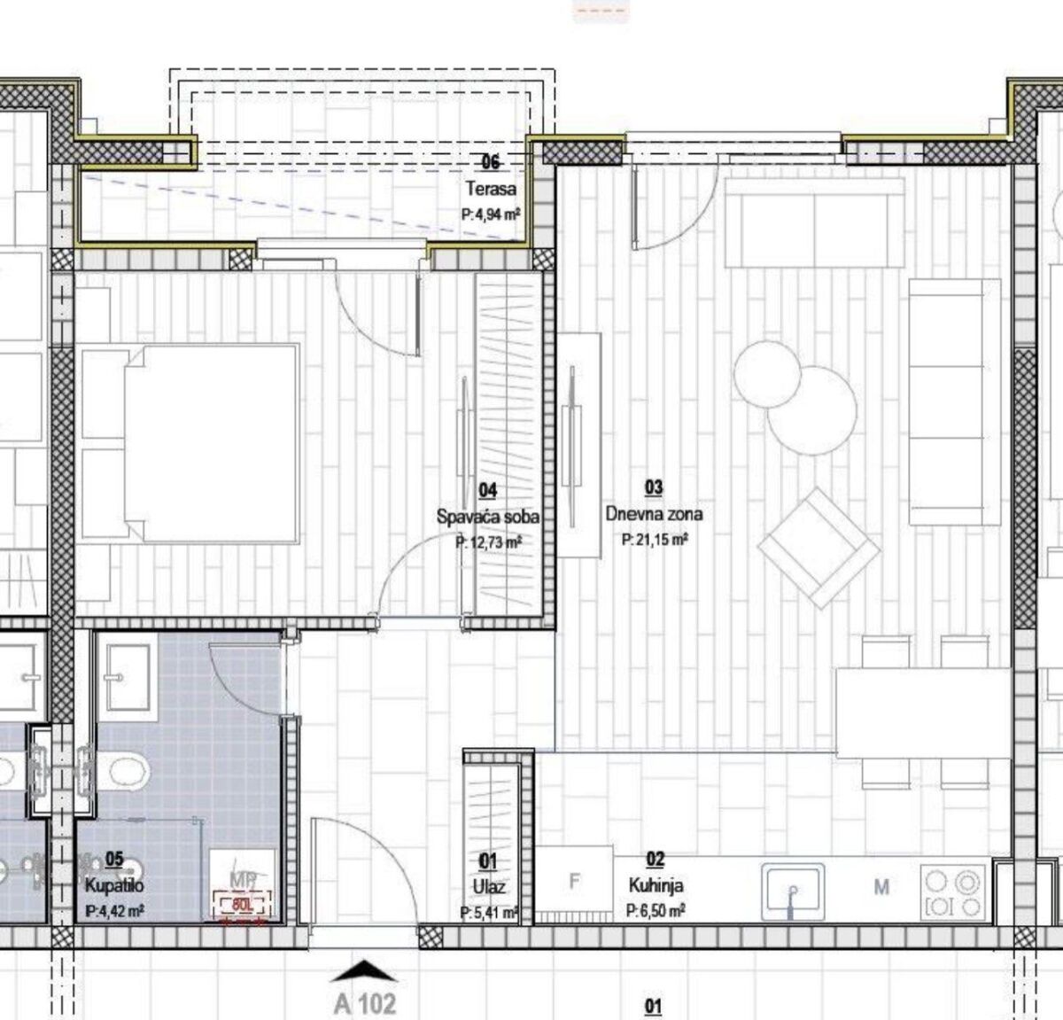 A one-bedroom apartment of 55.2 m² is for sale, offering maximum comfort and everything needed for a comfortable life. The apartment is located on the first floor of a modern residential unit within the luxurious CORTEX complex, scheduled for completion in April 2025. The CORTEX complex is designed as a gated and controlled community with amenities that surpass the standard market offerings. The complex provides 4,500 m² of green spaces and five shared areas, including: Fitness zone Park zone Hospitality venue Children's playground Sports courts Special attention is given to connecting children with nature, contributing to a higher quality of life in a modern urban environment. Apartment layout: Hallway Kitchen Living room One bedroom Bathroom Terrace The apartment comes with a garage space, adding to the convenience of living. The location of the complex offers a perfect balance between urban dynamics and a natural environment.