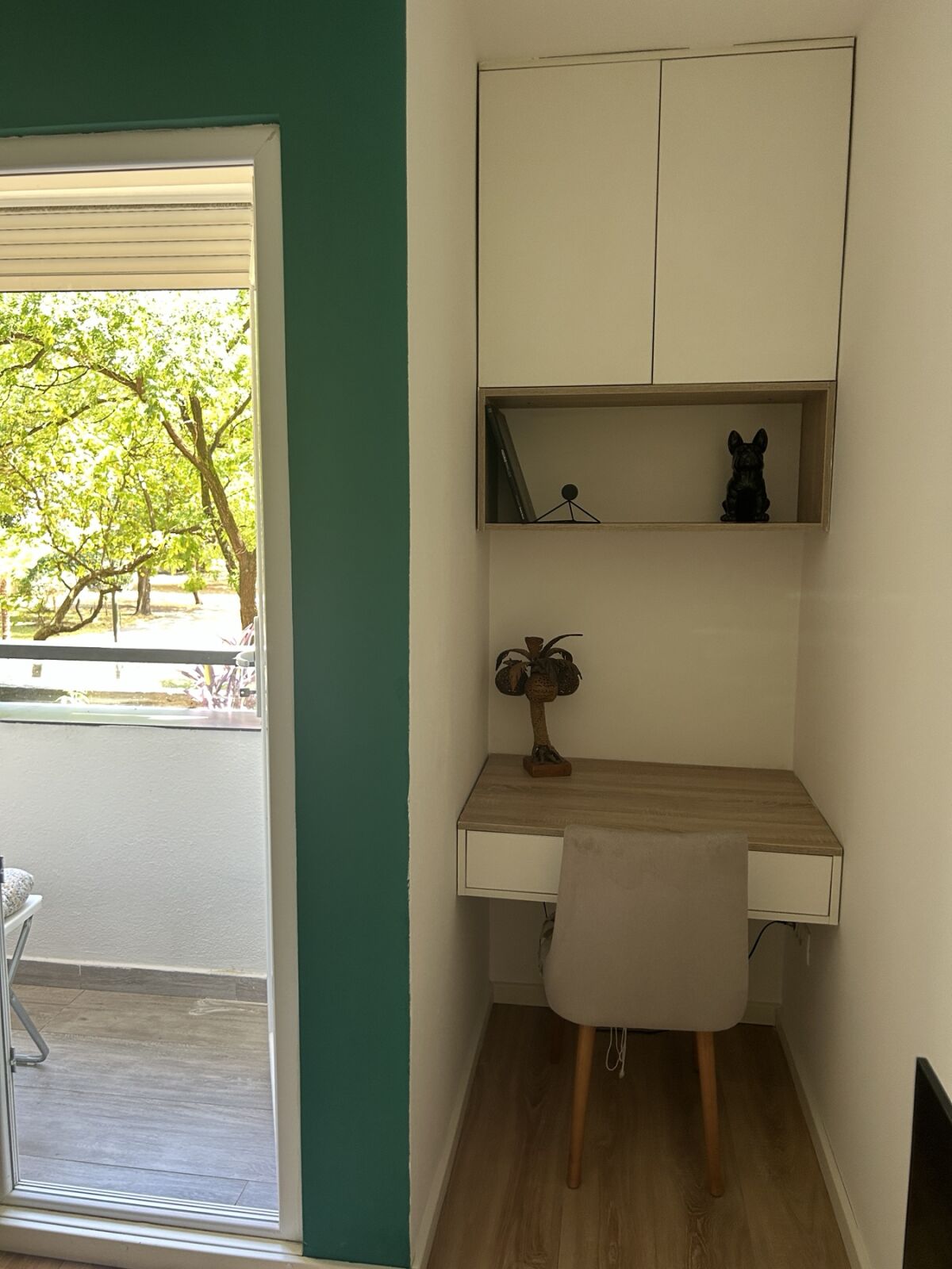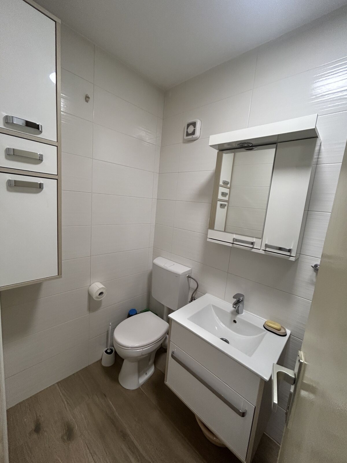 For rent a one-bedroom apartment in Block 5, with an area of 38m2. The apartment is located on the first floor of a residential building that has an elevator. Apartment structure: living room with kitchen and dining area, bedroom, hallway, bathroom, balcony. It is located near the Voli market, as well as schools, parks, and other city amenities.