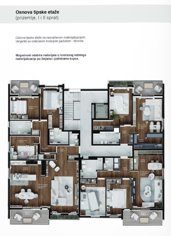 Apartment for sale in Verde Village, a luxury complex in the heart of the natural environment of Donja Gorica, Mihinja hill, Sitnica river. The apartment is located in a villa with 9 apartments. There is parking in the basement. The apartment has a view towards Lake Skadar, facing south-east. The deadline for completion is 12 months. Around the villa there is a large yard that is used by the tenants, about 1800m2. The apartment has 86m2 and is located on the ground floor.
