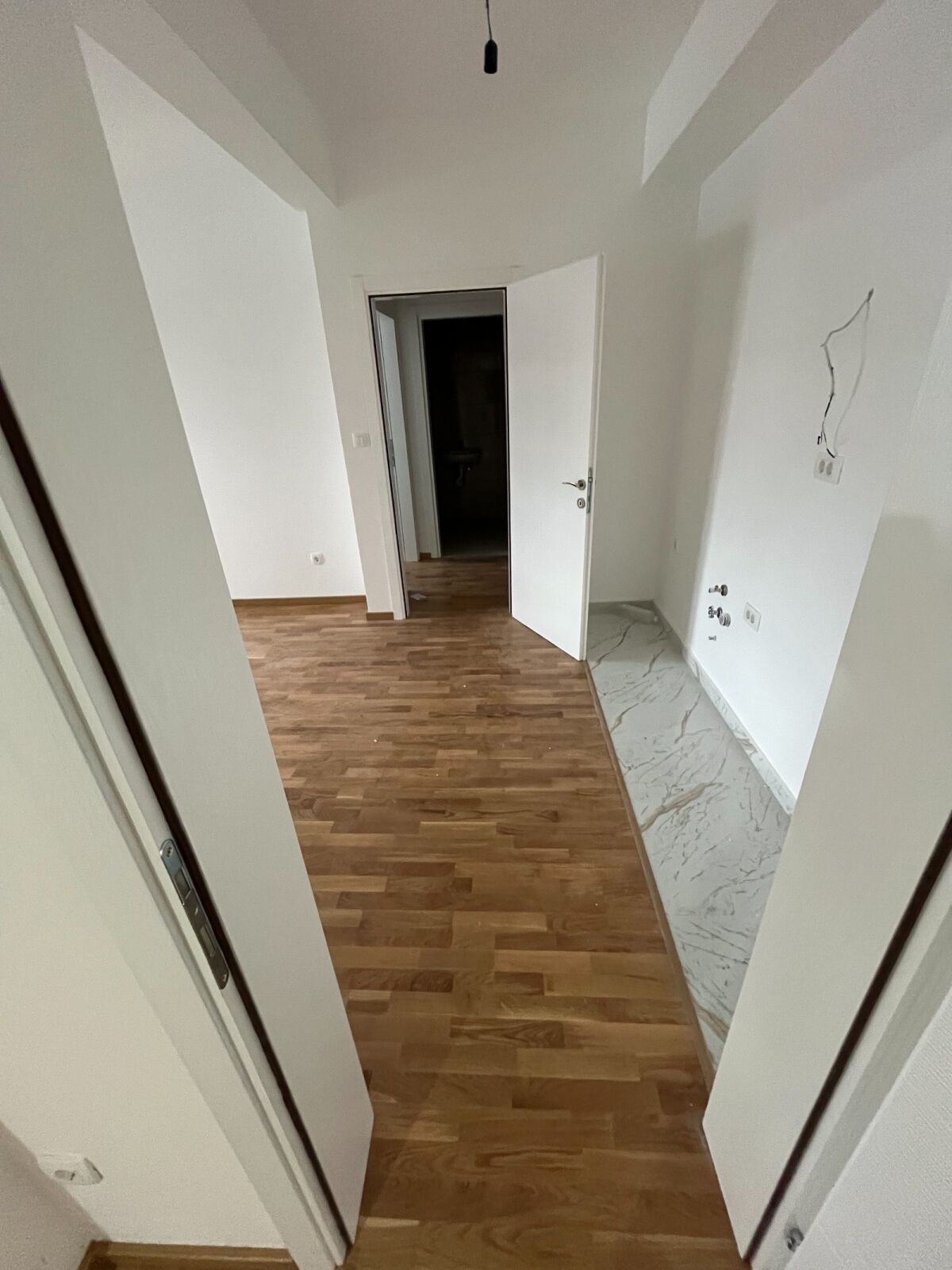 Two-bedroom, new, unoccupied apartment 63m2 for sale near Branko Bozovic elementary school, Zagoric. The apartment is located on the high ground floor of a new building that has an elevator. The property has two terraces. Parking available in front of the building.