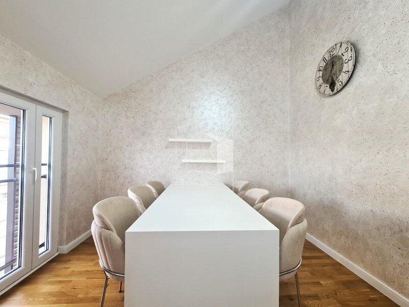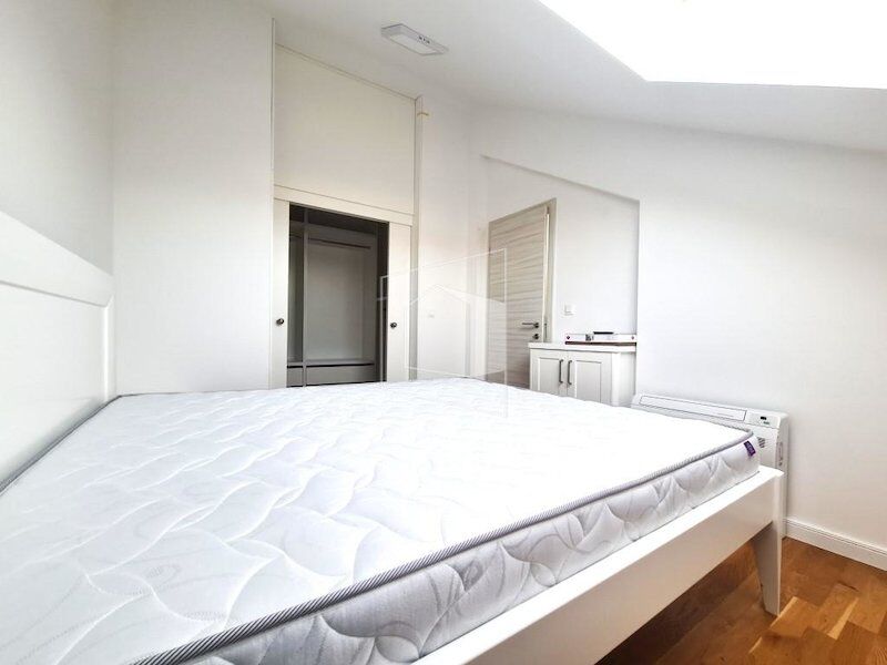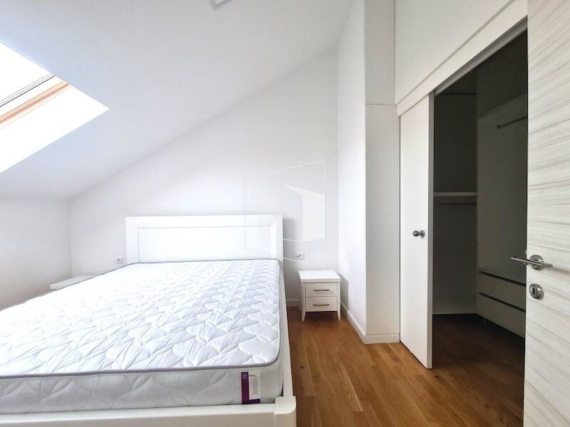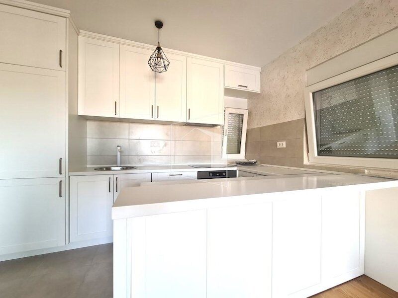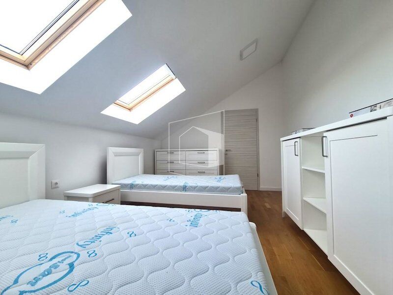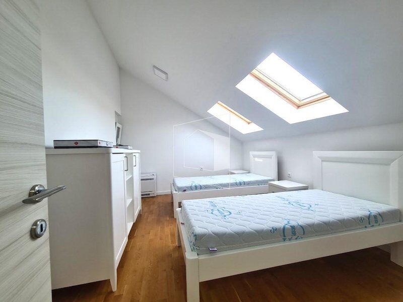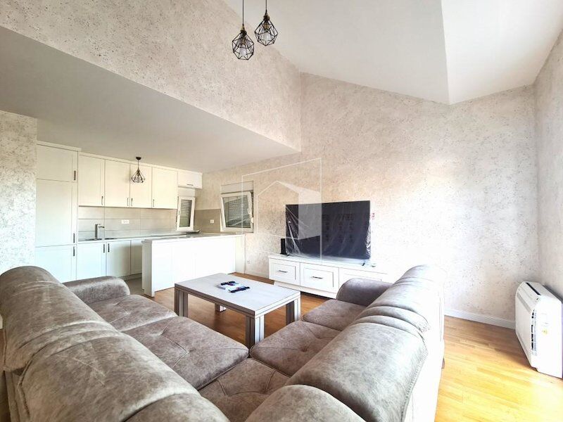 Three-room furnished duplex for sale, 110m2 at the foot of Ljubović hill in Podgorica. The apartment is located on the 5th floor of a newly built building, Cijevna komerc. The building has an elevator, a decorated entrance. Southwest oriented. Structure of the lower level: entrance hall, spacious living room with dining room and kitchen, terrace, bedroom and bathroom. Structure of the upper level: two bedrooms and a bathroom. The apartment has an excellent structure, fully equipped with new furniture and appliances. It has a multisplit air conditioning system. There is a possibility of buying a garage space. It is located behind the Chinese Embassy, in the immediate vicinity of Ljubović Hill, near an elementary school, kindergarten, hypermarket and other amenities.