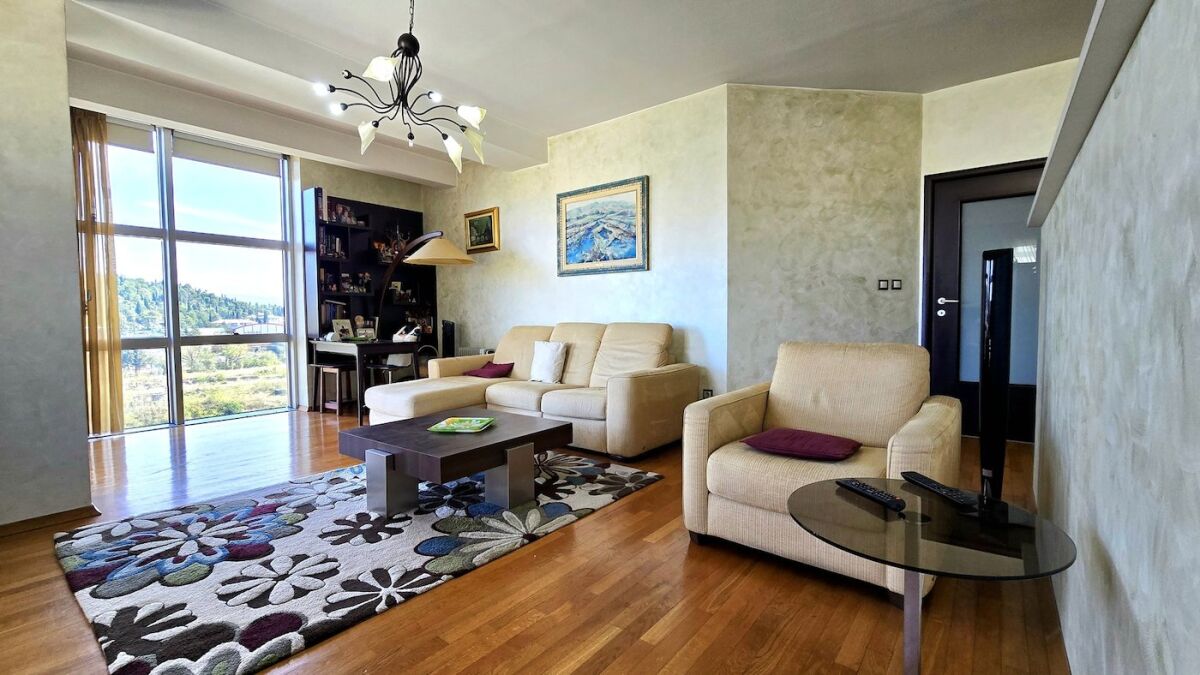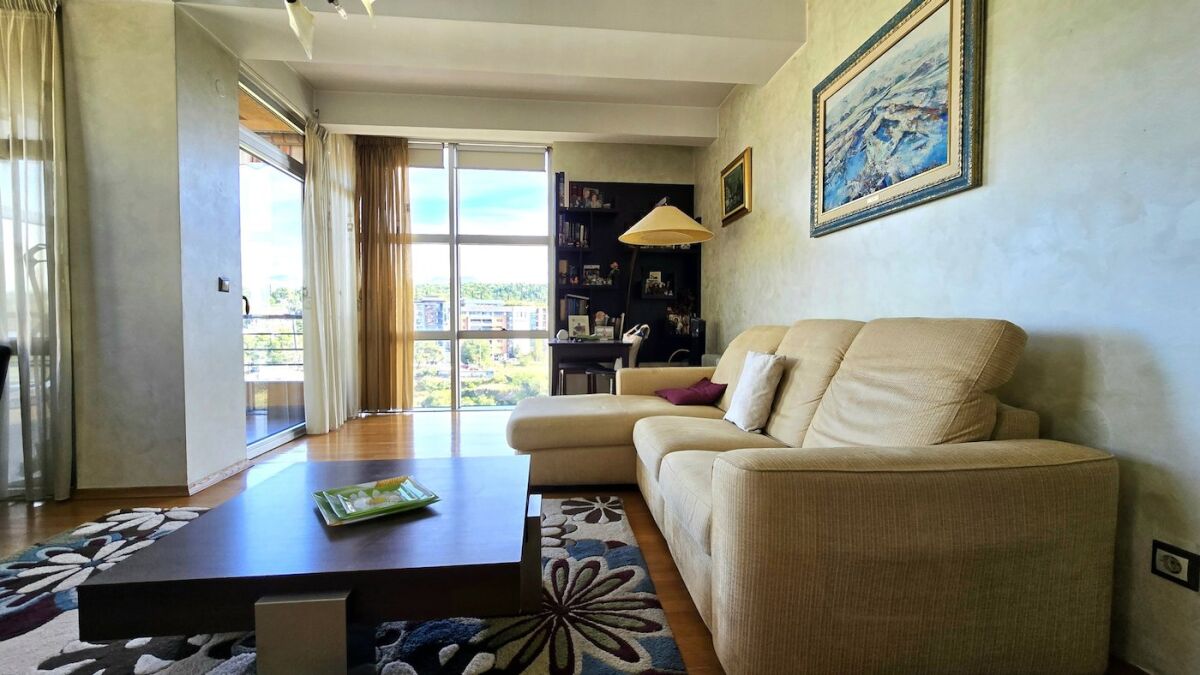 A two-room furnished apartment, 85m2, in the Preko Morača part of Podgorica is for sale. It is located on the 5th floor of the Velimirović building, across the street from "Pet udovica". It is oriented to the east and very well lit with a beautiful view of the Morača river, the Gorica hill and the Millennium bridge. The building has an elevator and a regularly maintained entrance. Public parking is available in front and behind the building. Structure : entrance hall, large living area with dining room, kitchen, two bedrooms, bathroom, laundry room, two terraces. The location is an additional advantage of this property, it is located in the immediate vicinity of a kindergarten, school, numerous markets, it allows accessibility and proximity to urban, cultural, business, and sports facilities. The square footage of 82m2 is entered in the real estate register.