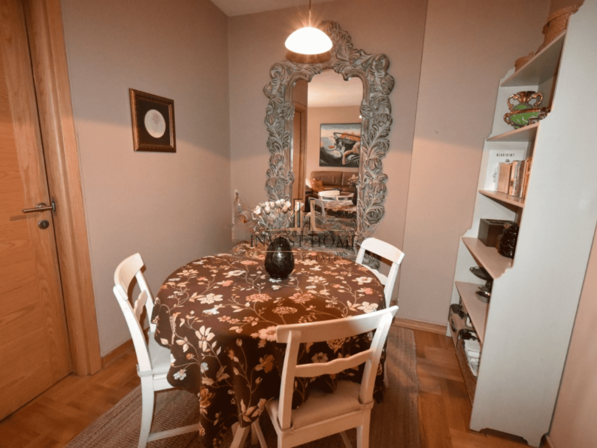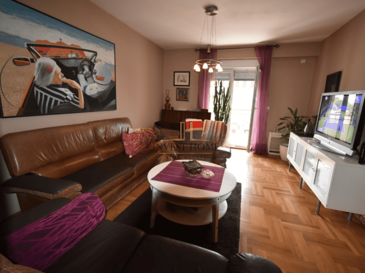 For sale is a three-bedroom apartment, Preko Morače, 112m2. It is located on the first floor of a residential building. The apartment is air-conditioned and has a multisplit heating and cooling system. It is sold unfurnished. It faces east-west. It is close to primary and secondary schools, colleges, banks, restaurants, cafes, as well as other essential city amenities.