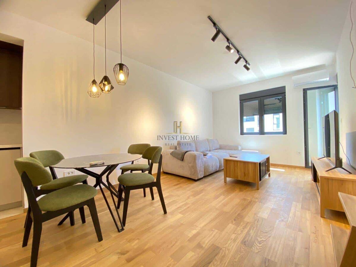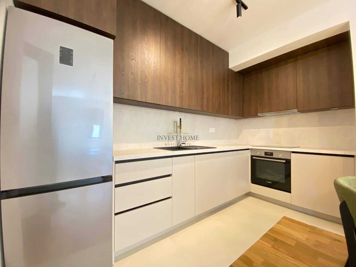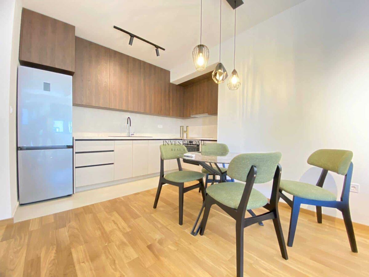 For sale one-bedroom apartment, City kvart, with an area of 47m2. It is located on the fourth floor of the residential building Akton which has an elevator. Orientation – southeast. Apartment structure: living room with kitchen and dining area, hallway, bedroom, bathroom, and terrace. It is in close proximity to cafes, restaurants, banks, shopping center, supermarket, and other essential city amenities. There is a possibility to purchase a garage space for the price of €20,000.